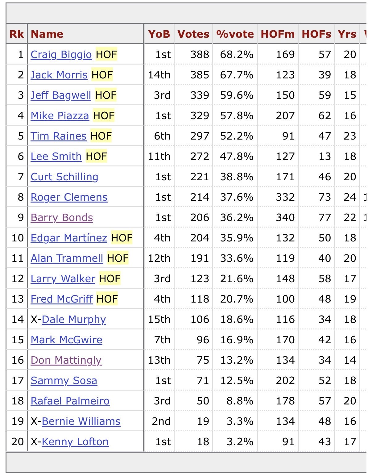 • Lofton fell off because of the overcrowding on the ballot and the Hall’s rule that you can only vote for 10 candidates. Check out the ballot from Lofton’s only year: