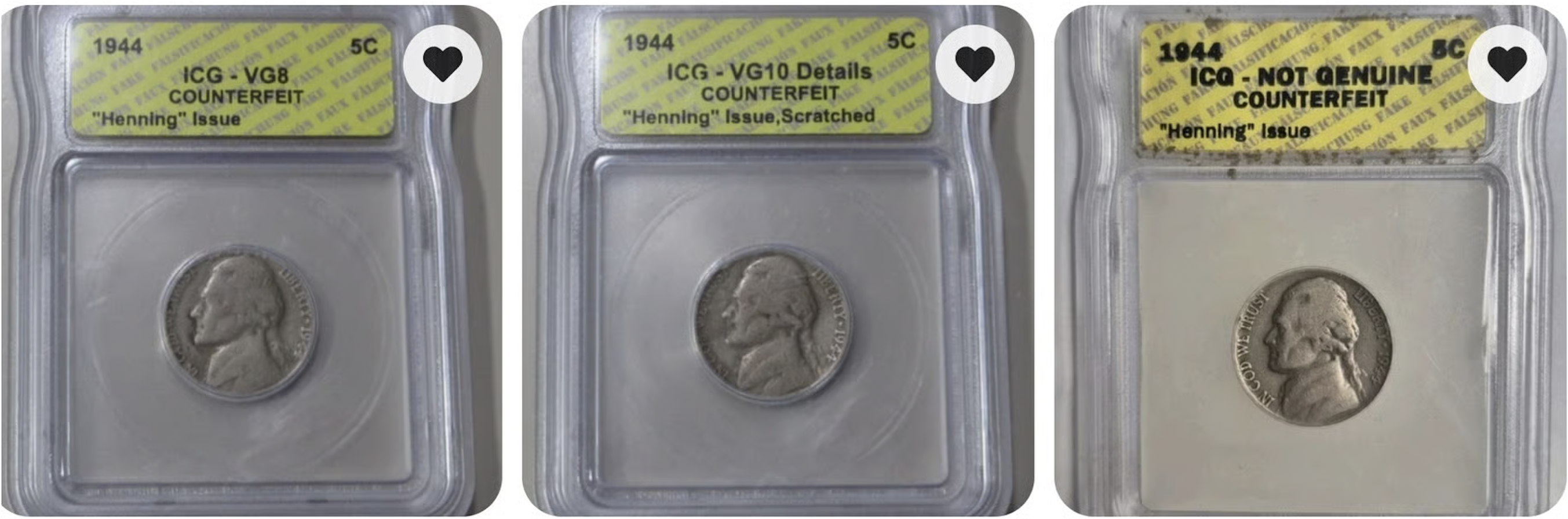 Every nickel made by Henning is a "counterfeit," and thus by definition "not Genuine."