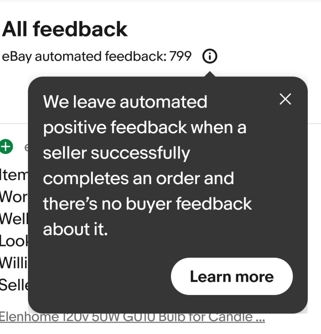 "eBay automated feedback is automatically added to the seller’s account when a transaction is successfully completed."