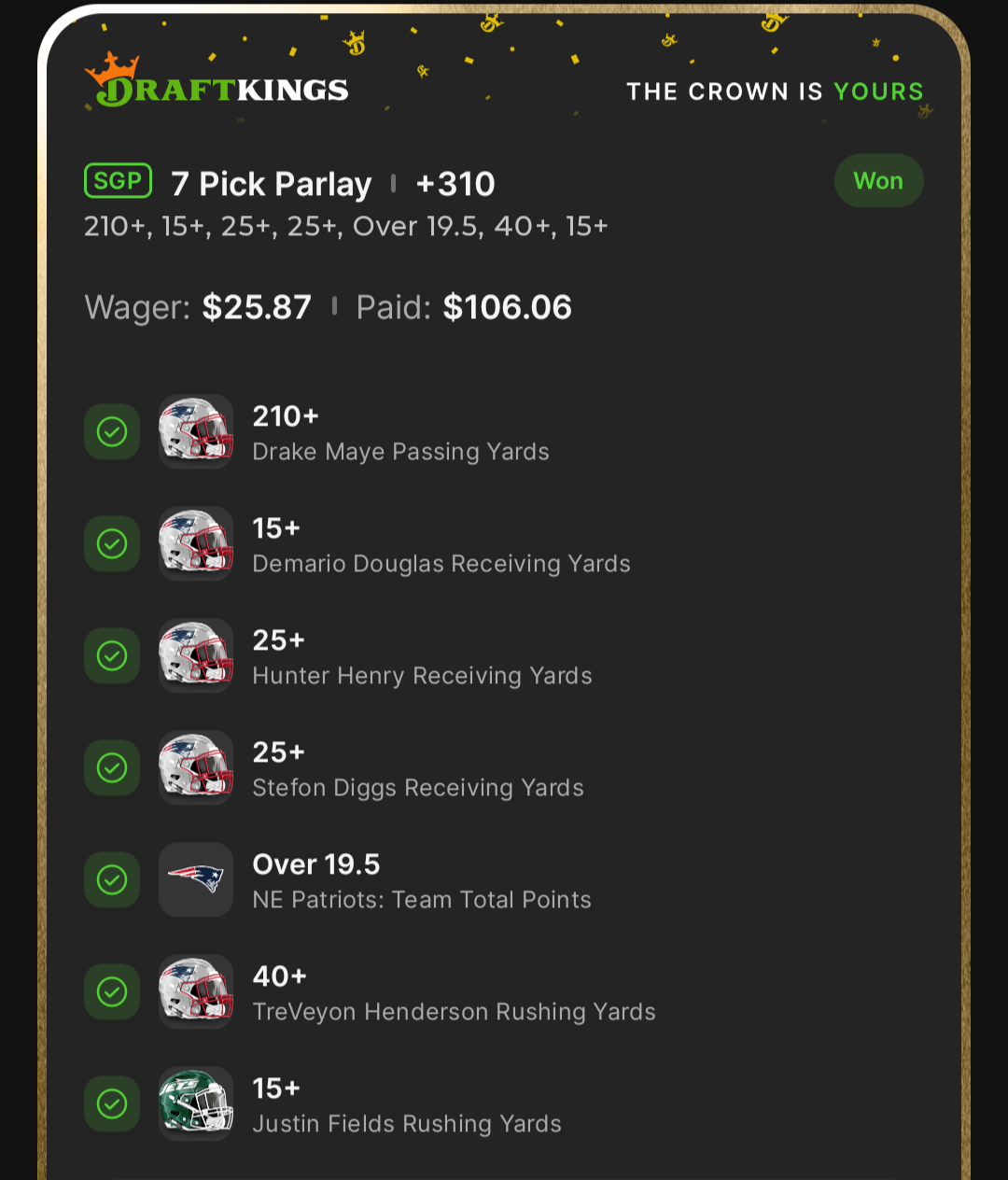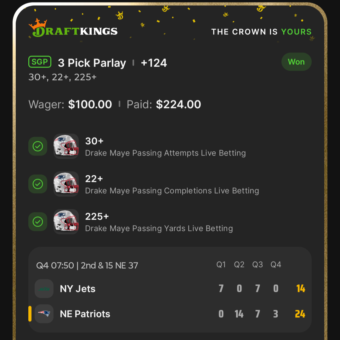 I missed out on a $376 winner, I needed another TD pass from Maye but it's all. good, in the green 🍻