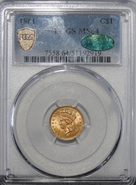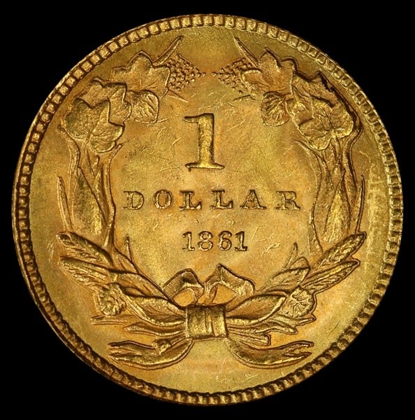 Easily overlooked fact: there were only 2 issues of the 1861 G$1 - this one from Philadelphia & the 1861-D minted only under the Confederacy.