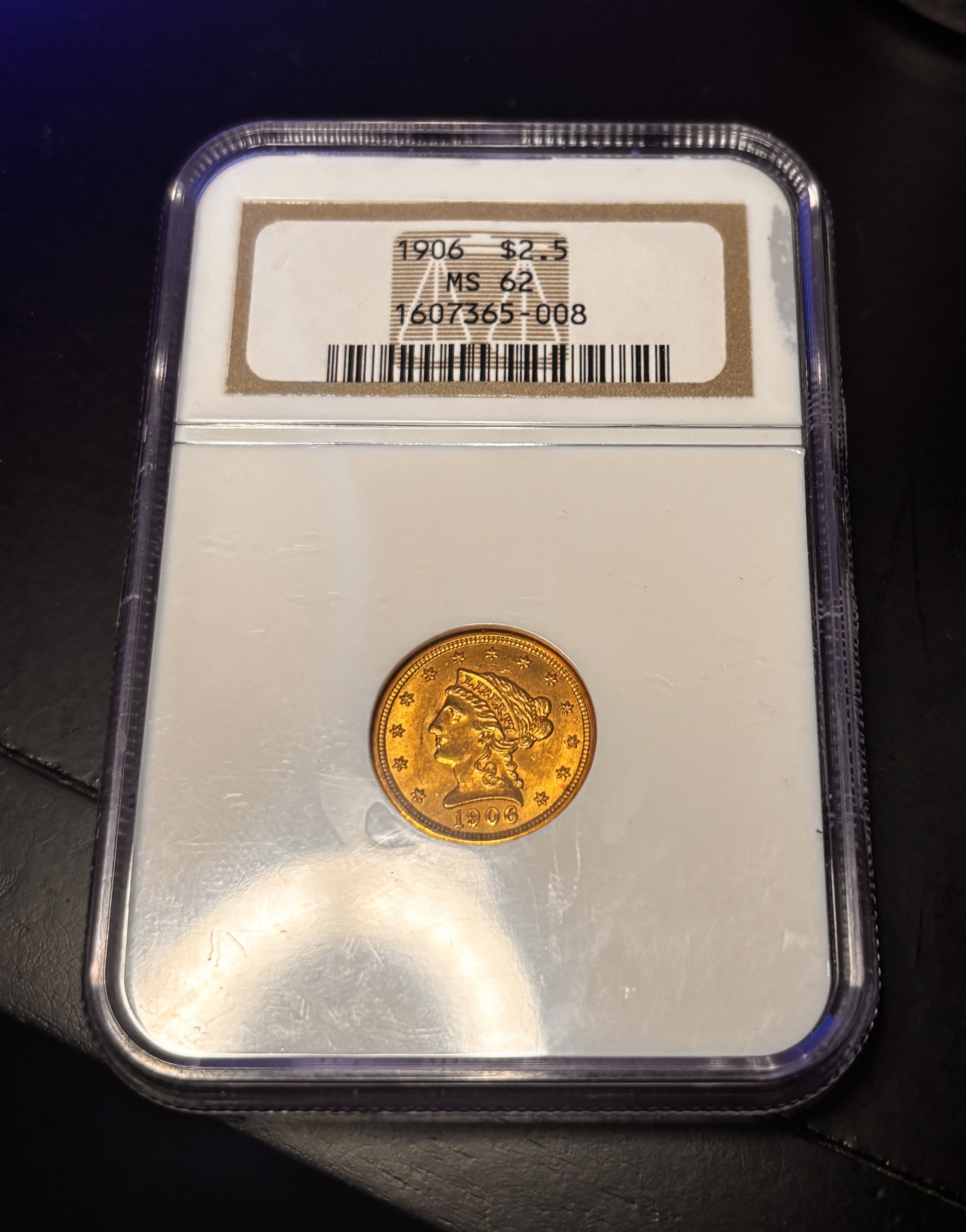 Picked this one up from the shop today. This one is in an old NGC holders. Post your $2.5 quarter eagle!