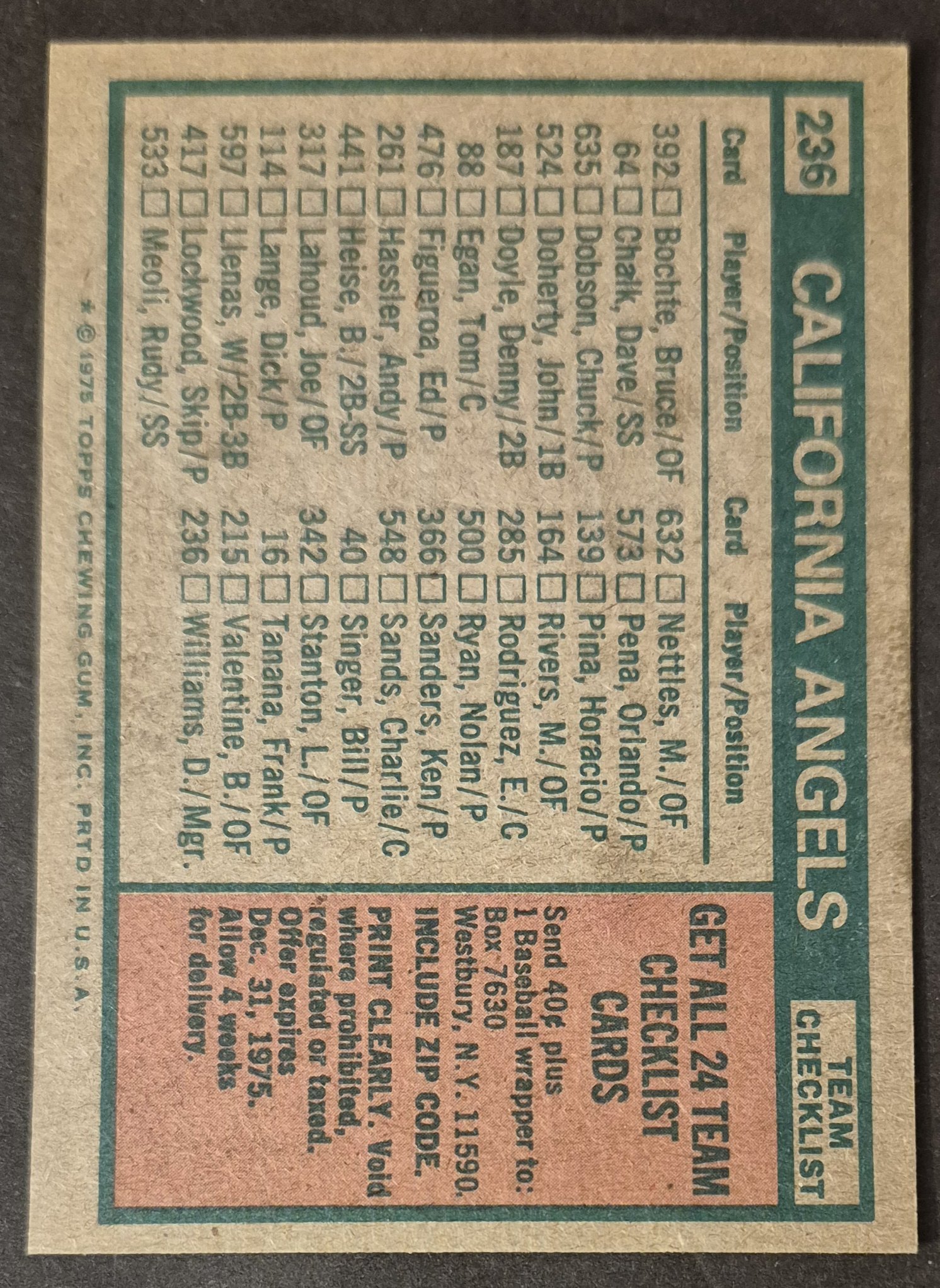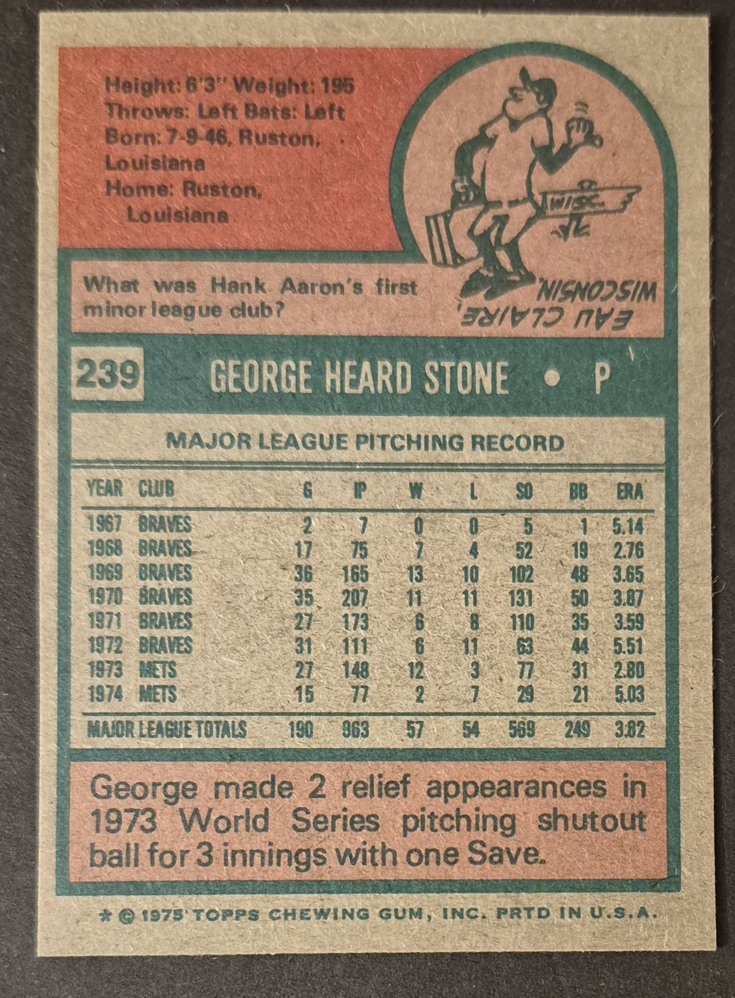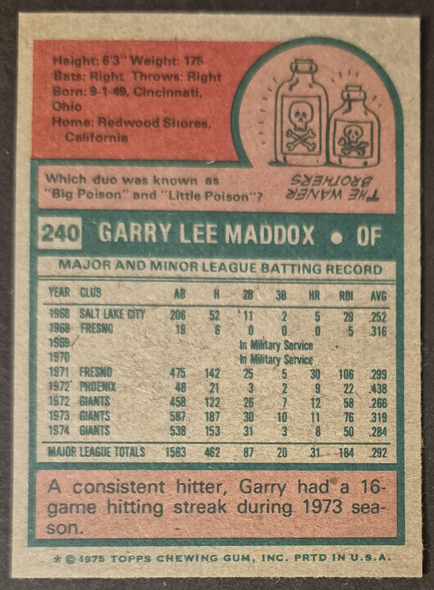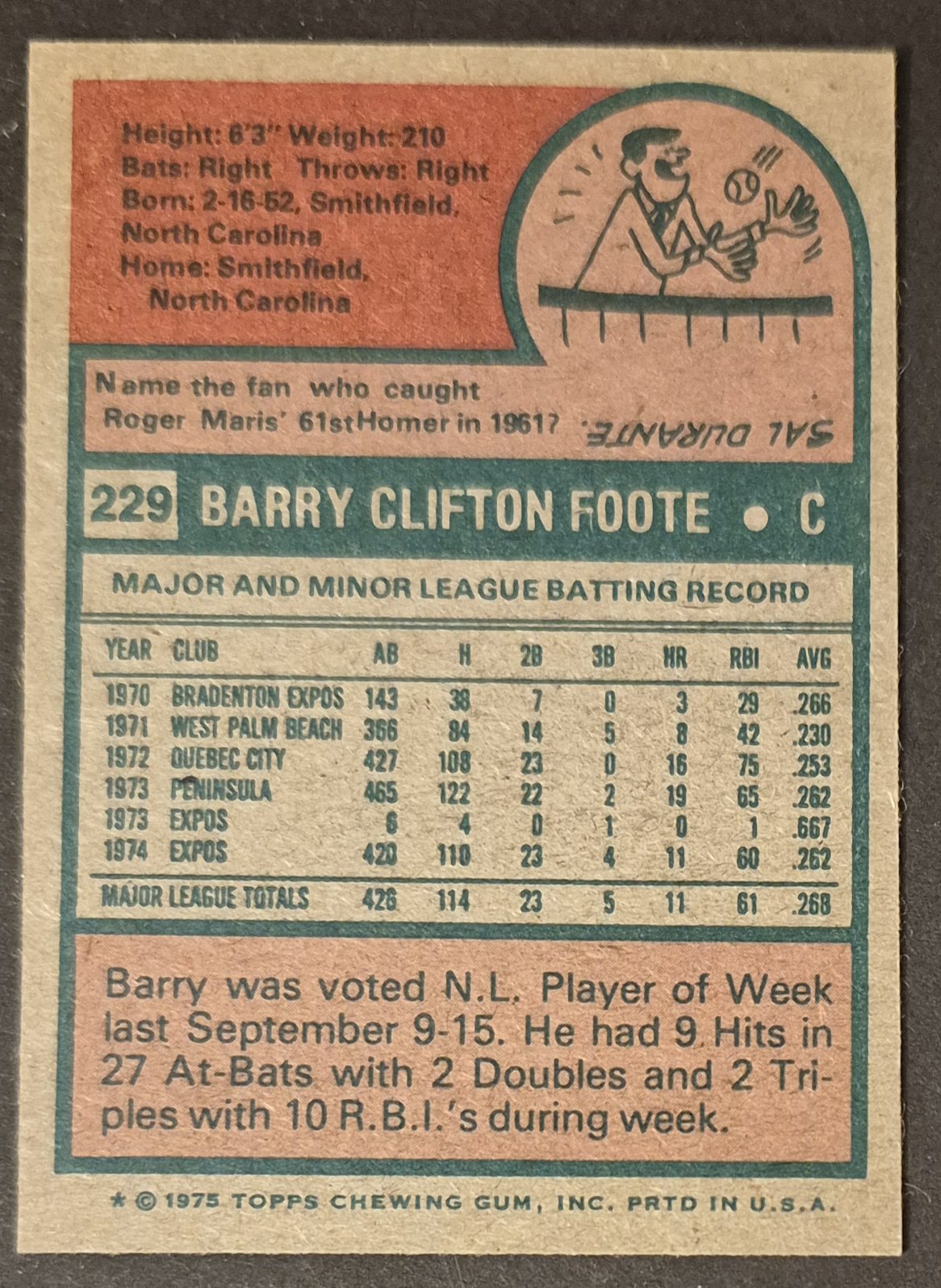 Anyway, this info was for the casual 1975 collector or Yount fan that didn't know this " puddle variation" existed.