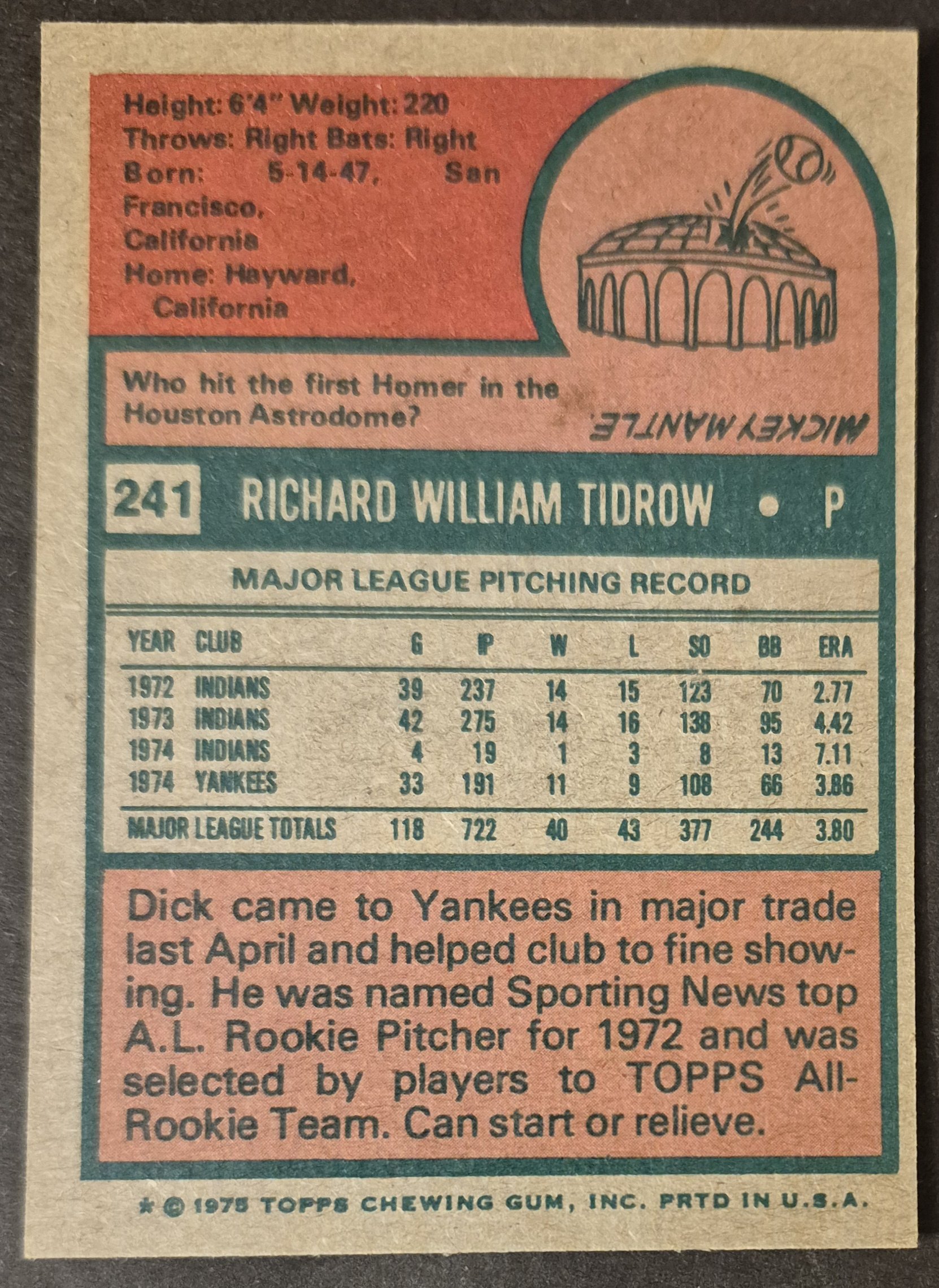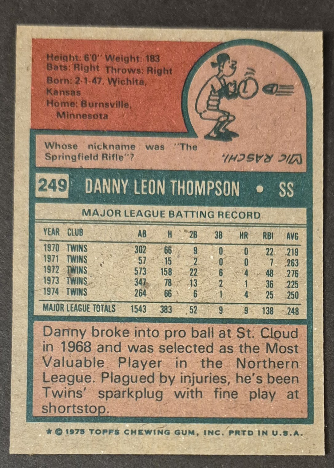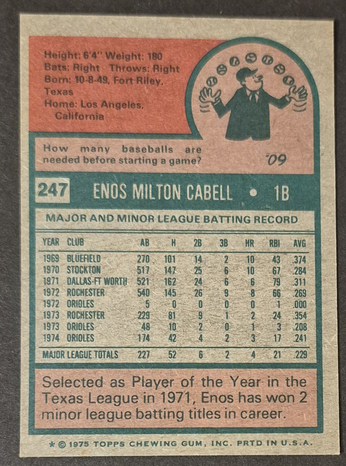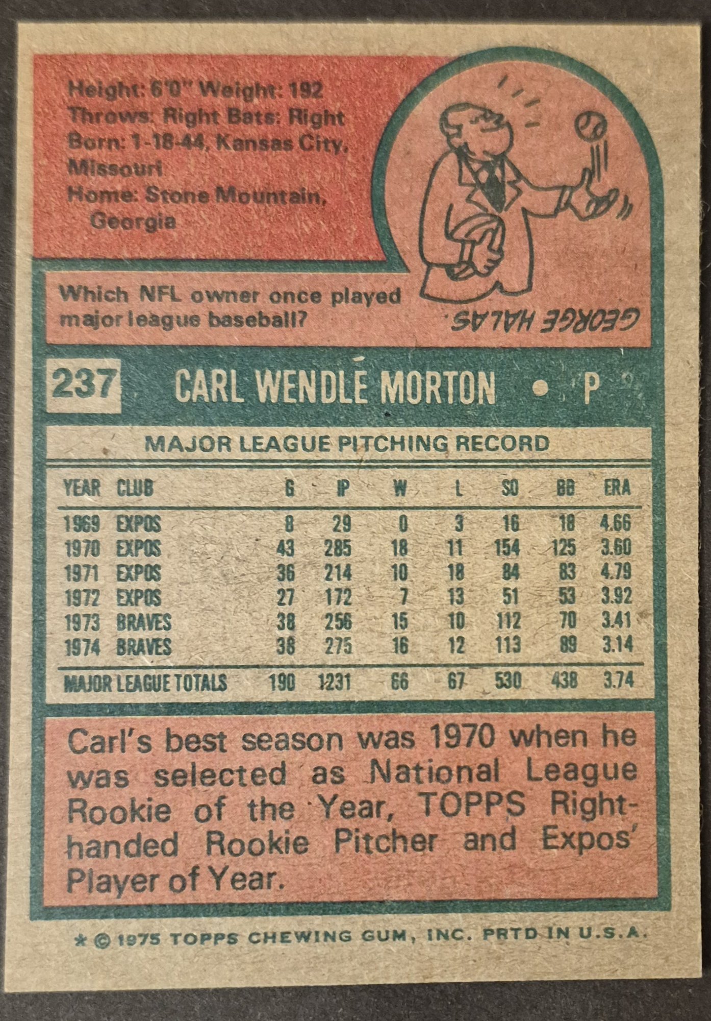 Anyway, this info was for the casual 1975 collector or Yount fan that didn't know this " puddle variation" existed.