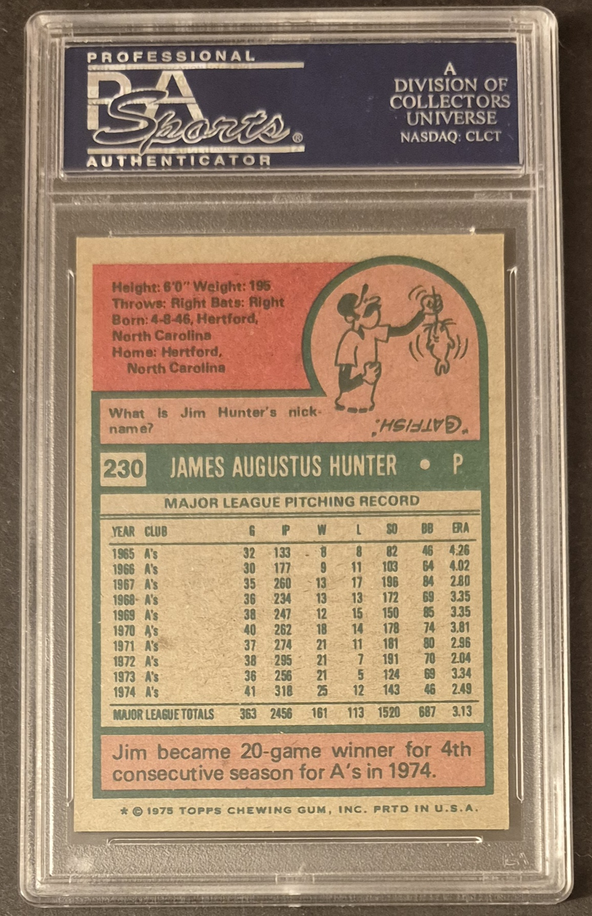 Now, I'd been hoarding 1975s for several years by that time, and had handled a crapload of Yount cards, and looked at even more online. Once you see the puddle, you can't unsee it, so you notice it every time when a card has it. Some have it and some don't, and all I said was, "This one has the puddle right smack dab in the middle, so if anything, it should get a PD." because to me, it looks like a big water puddle in the grass.