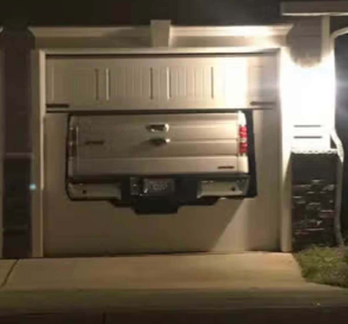 This might be a one-of-a-kind DIY remodel - strange. Maybe checking the size of the garage before buying the truck would have been a better idea.