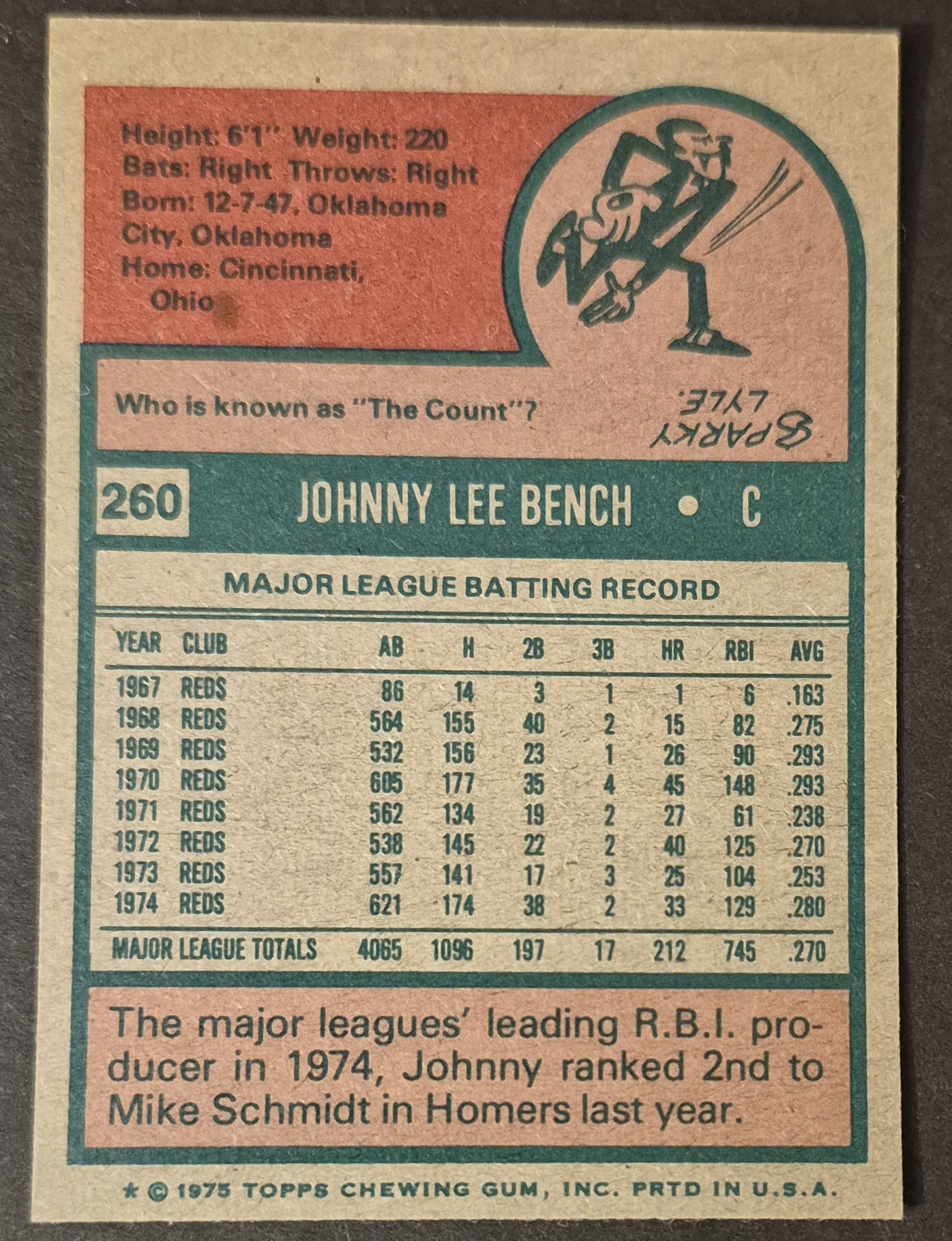 Now, I'd been hoarding 1975s for several years by that time, and had handled a crapload of Yount cards, and looked at even more online. Once you see the puddle, you can't unsee it, so you notice it every time when a card has it. Some have it and some don't, and all I said was, "This one has the puddle right smack dab in the middle, so if anything, it should get a PD." because to me, it looks like a big water puddle in the grass.