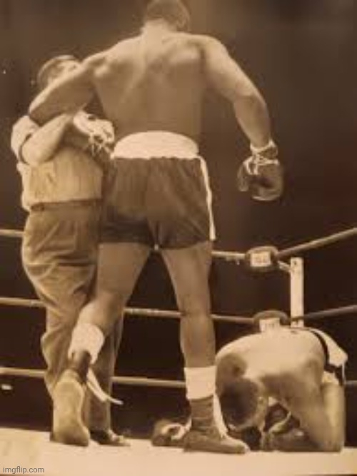 Ali looked down at the fallen Liston, cocked a fist and screamed at him, "Get up and fight, sucker! Get up and fight!"
