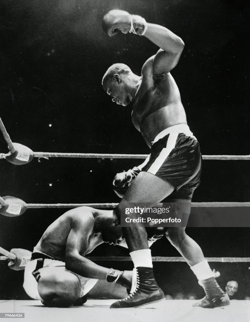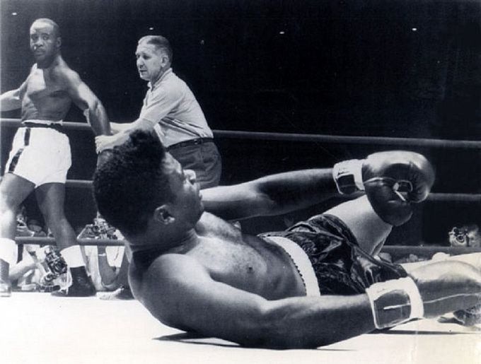 Sonny Liston watches as Albert Westphal sinks to the floor unconscious after a rough 1-2 in Philadelphia, Pennsylvania, in 1961. Westphal would take minutes to regain consciousness.