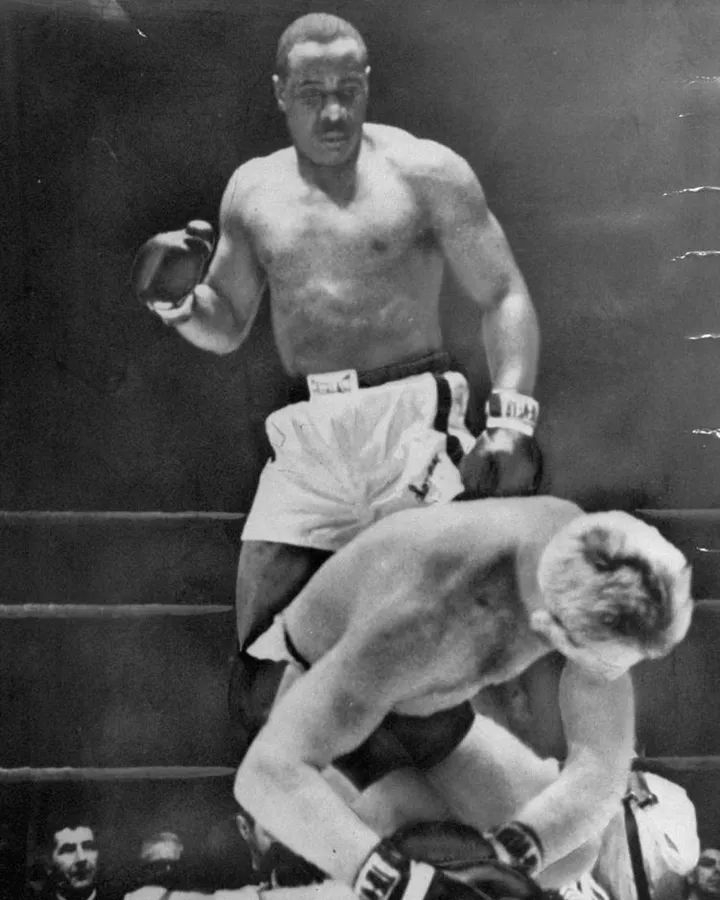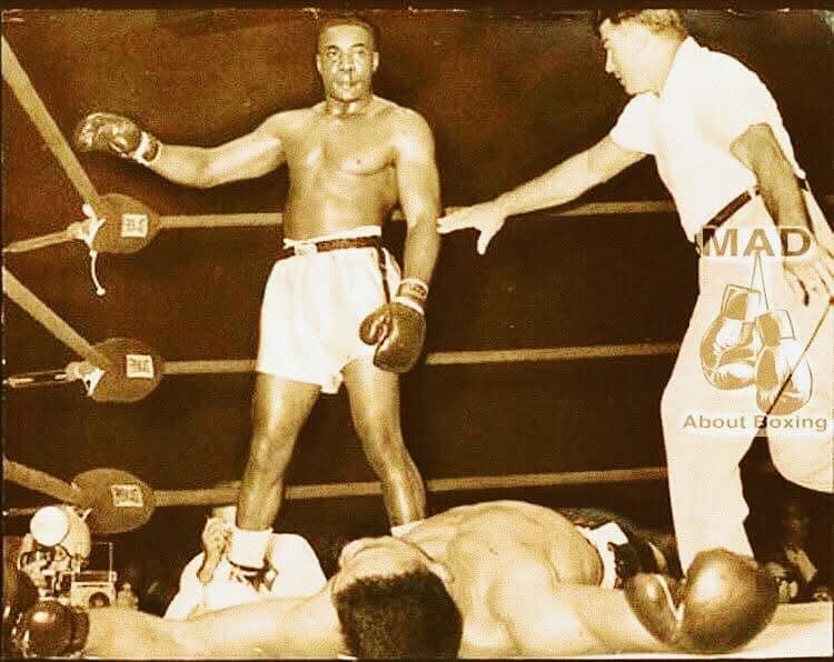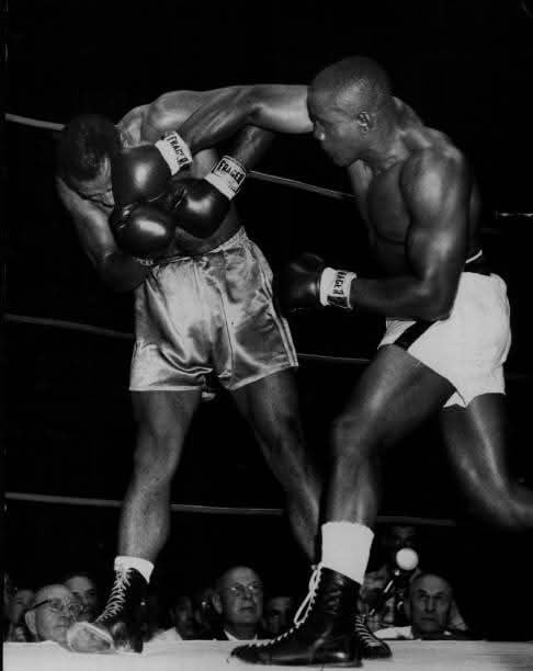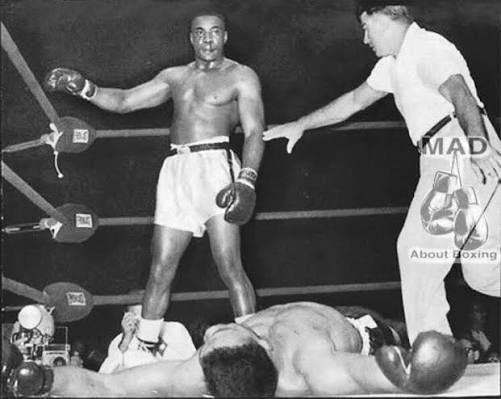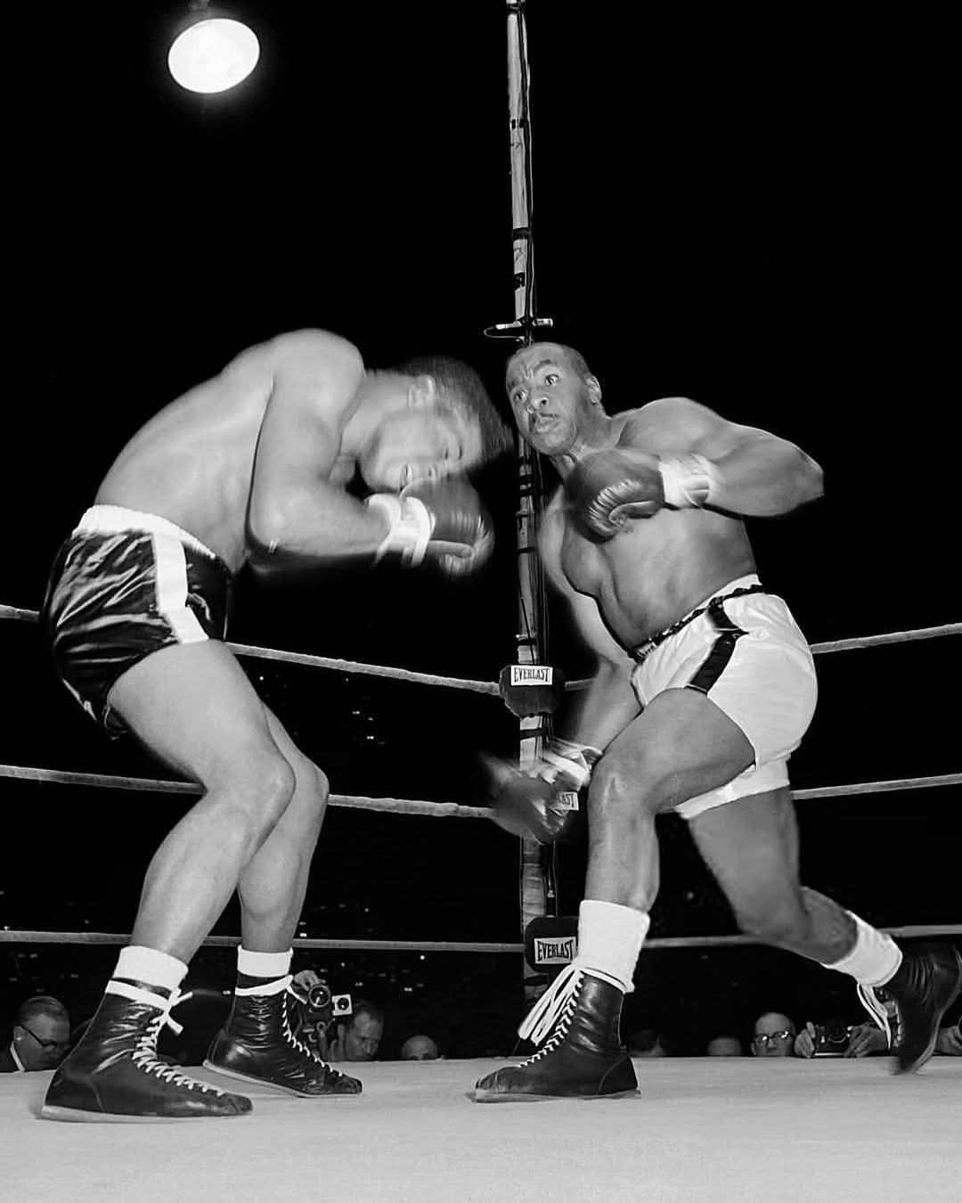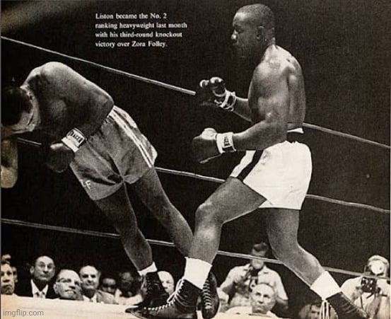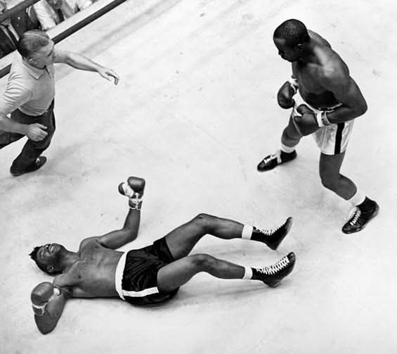 This shot is from the first Sonny Liston-Cleveland Williams fight, great shot, you can see how brutal it was, Liston's nose is broken and bleeding. Williams was a murderous puncher and he caught Liston with some thunderous shots. But this fight really demonstrated what a nightmare Liston was, Williams hit him with the kitchen sink and it just didn't matter, Sonny still smashed him.