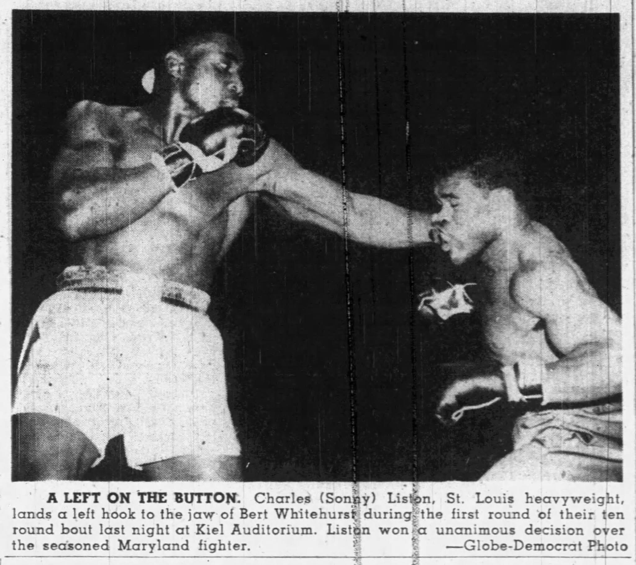 Not pleased with the company Liston was keeping—one of his pals was 385-pound Barney Baker, a reputed head cracker for the Teamsters—the St. Louis police kept stopping Liston, on sight and without cause, until, on May 5, 1956, 3½ years after his release from prison, Liston assaulted a St. Louis policeman, took his gun, left the cop lying in an alley and hid the weapon at a sister's house. The officer suffered a broken knee and gashed face. The following December, Liston began serving nine months in the city workhouse.