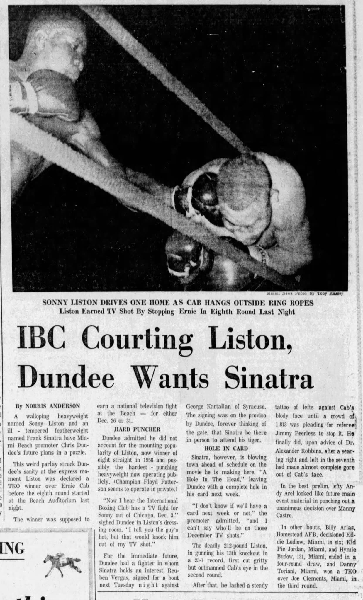 There were cries that Liston had thrown the fight. That night Conrad, Liston's publicist, went to see him in his room, where Liston was sitting in bed, drinking.