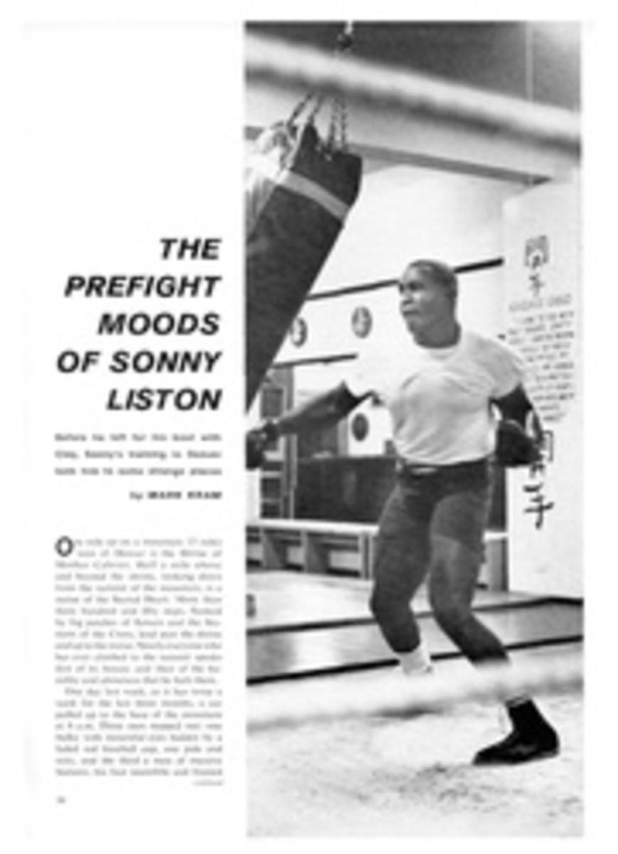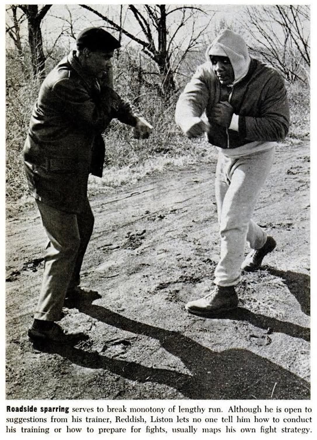would take long walks between workouts, and during them Liston would recite the complete dialogue and sound effects of the comedy routines of black comedians like Pigmeat Markham and Redd Foxx. "He could imitate what he heard, down to creaking doors and women's voices," says McKinney. "It was hilarious hearing him do falsetto."