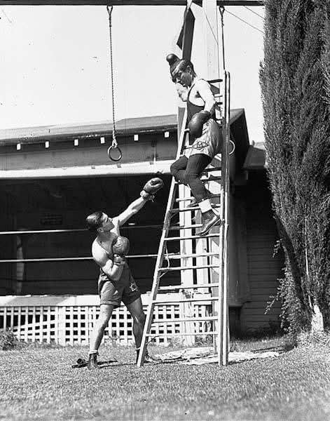 After 81 professional fights over 11 years in the ring, he finally hung up the gloves in 1933. He broke into the motion picture business by coaching cowboy star Tom Mix in his fight scenes. As a result of his association with Mix, he landed a job in the properties department of one of the Hollywood studios, where he worked in his later years. Dave Montrose died in 1977 at the age of 73. He is remembered fondly in the boxing community as a tough scrapper with the heart of a lion.