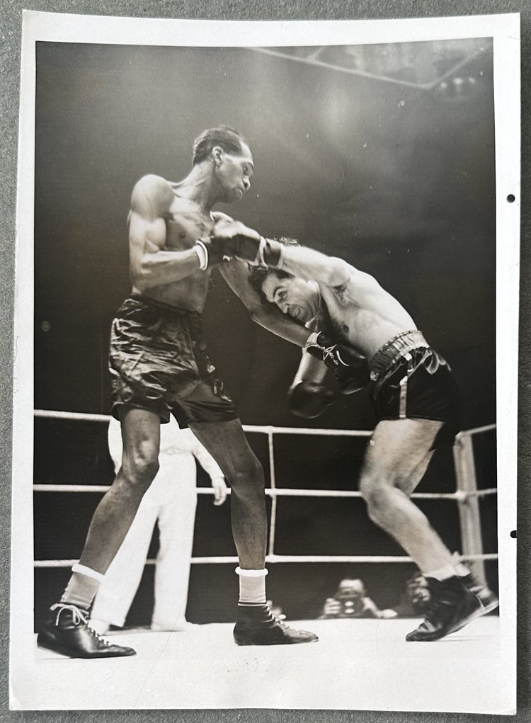 Giving away almost a head in height to the gangling Panamanian, and 4 inches in reach, the Newsboy turned in a fine performance, outscoring his opponent with stinging rights and lefts to the body. Although the Panamanian drew several cautions for head butting during the melee, he also showed flashes of sterling offensive work with hard rights, but the Newsboy always came back to give more than he received.