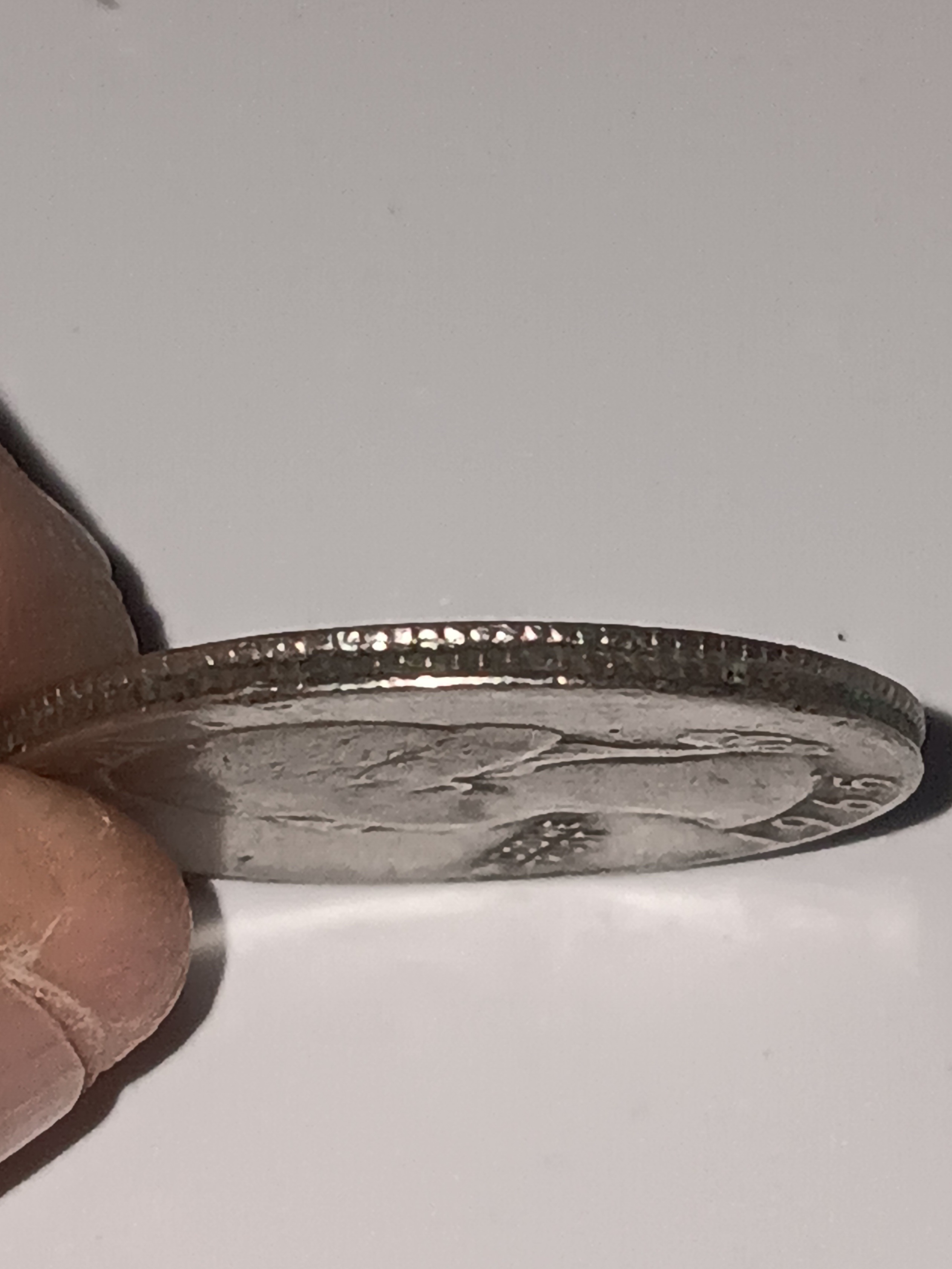 I was hunting through my rolls of coins and came across this quarter I was wondering if someone could help me identify the error. The quarter weighs 5.14 g and the center of the whole rim has a groove through the middle of it any information would be appreciated it is a 1965 P quarter