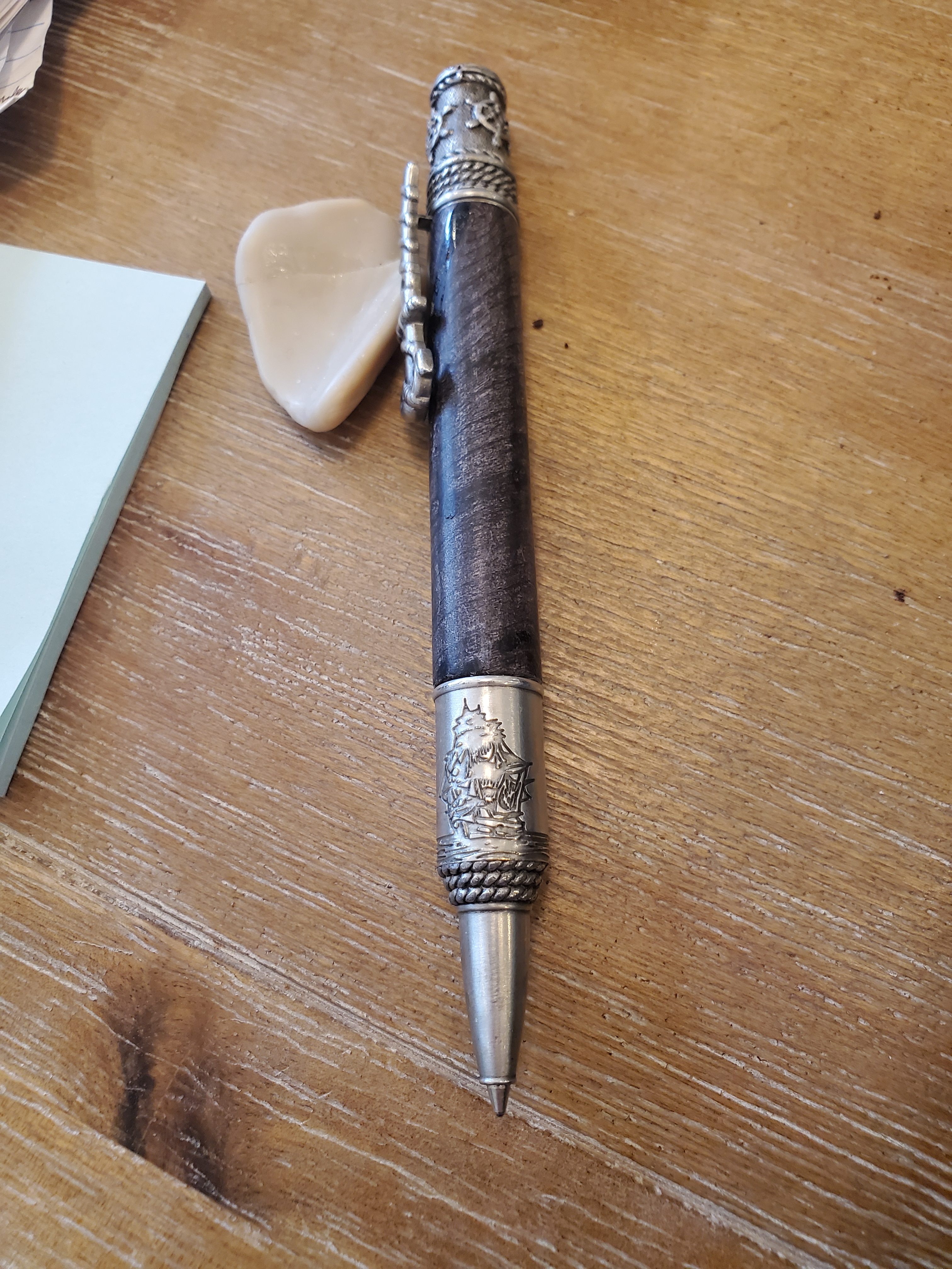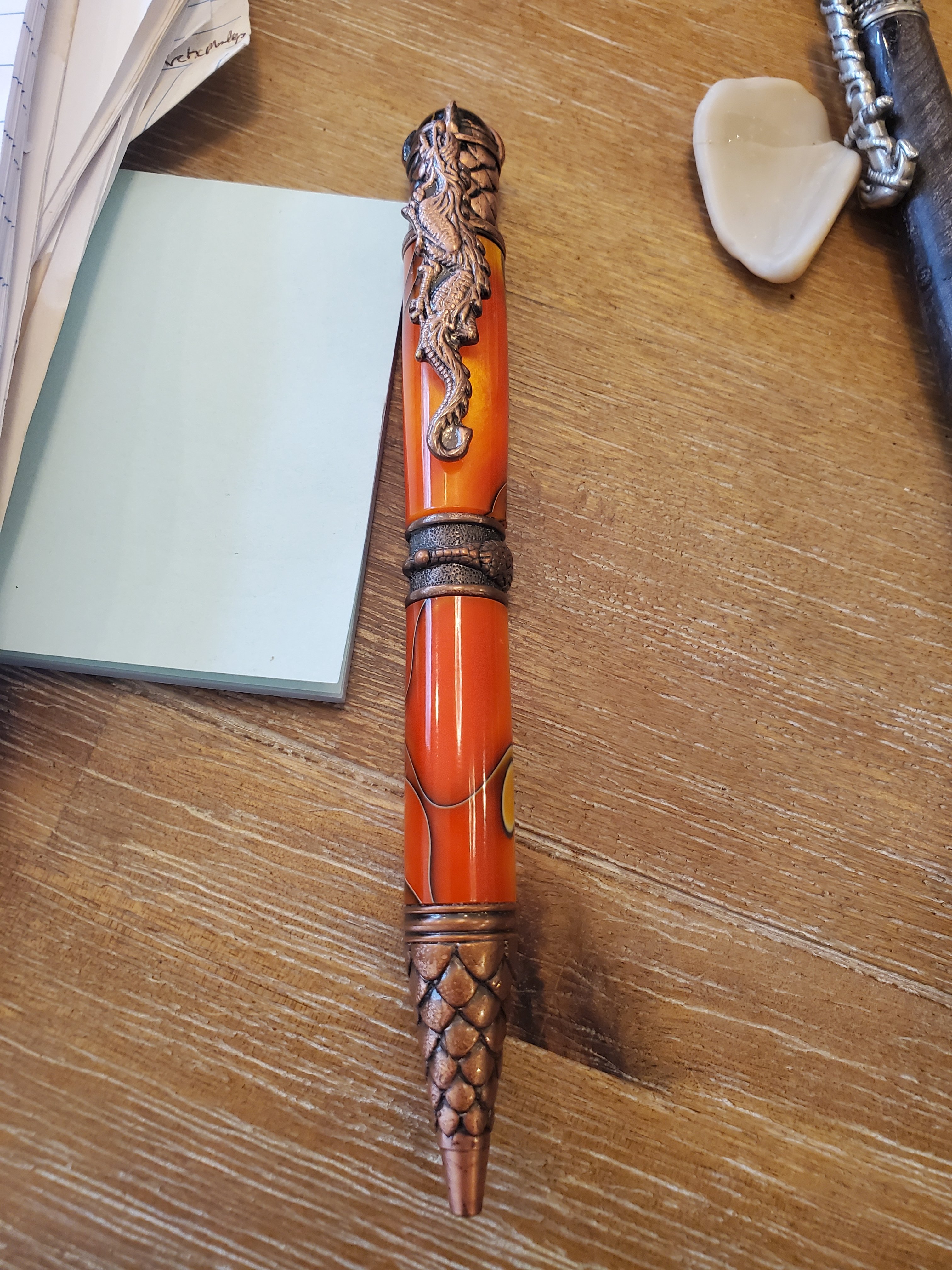 Nice work on the pen. I can always appreciate a cool pen. My nautical pen is my regular go to for work. Dragon needs a refill.