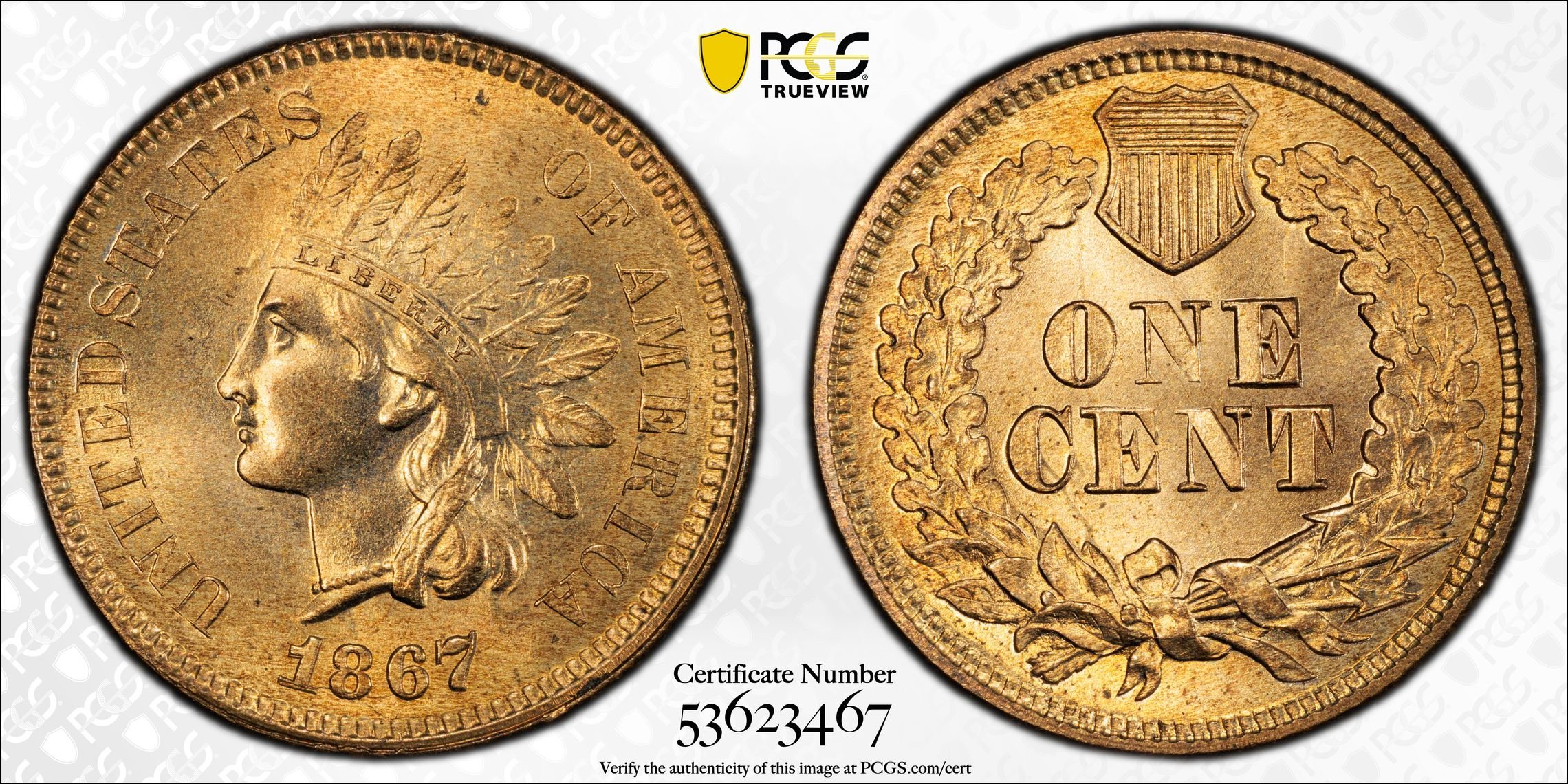 MS 66RD. They’re only 5 of these, none higher. Obviously, the 1867 IHC is an extreme rarity at this level.