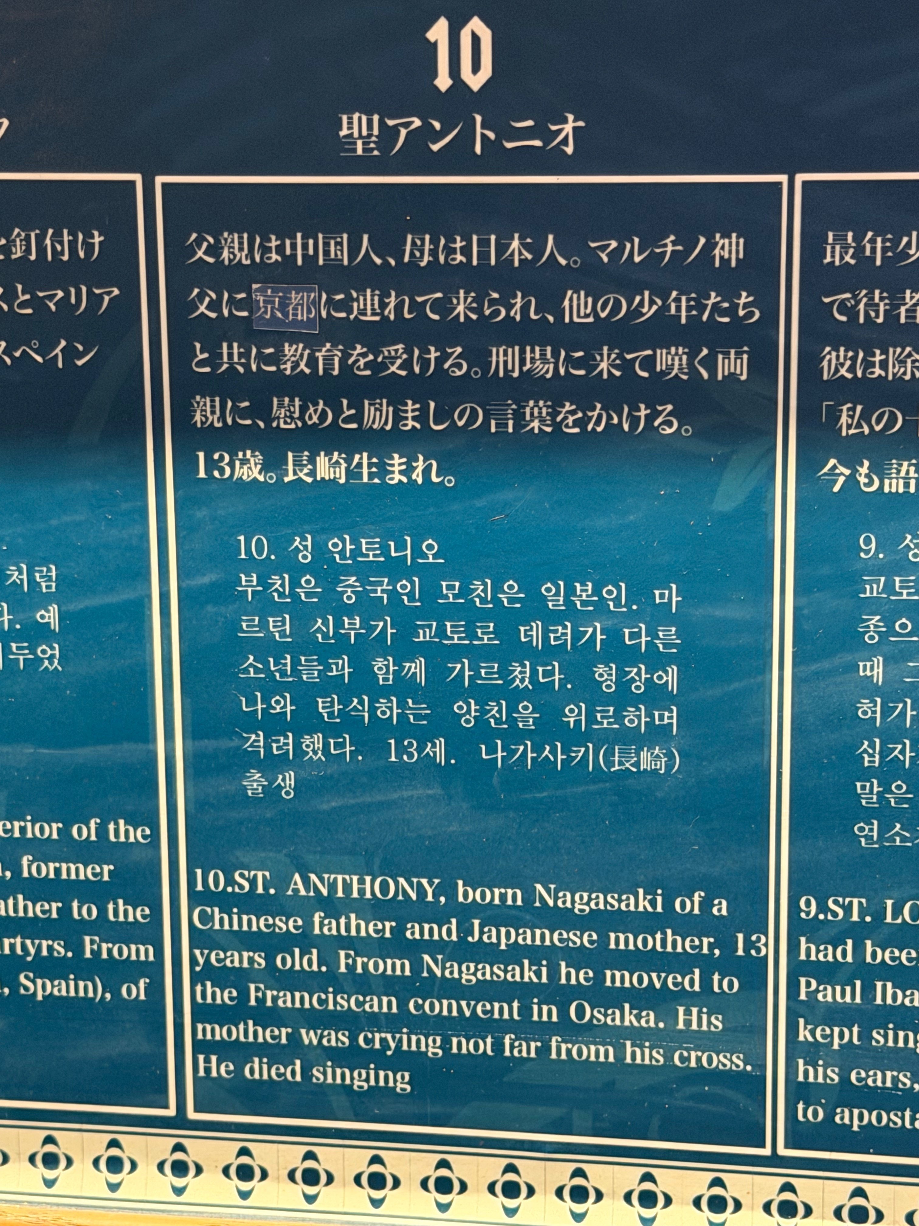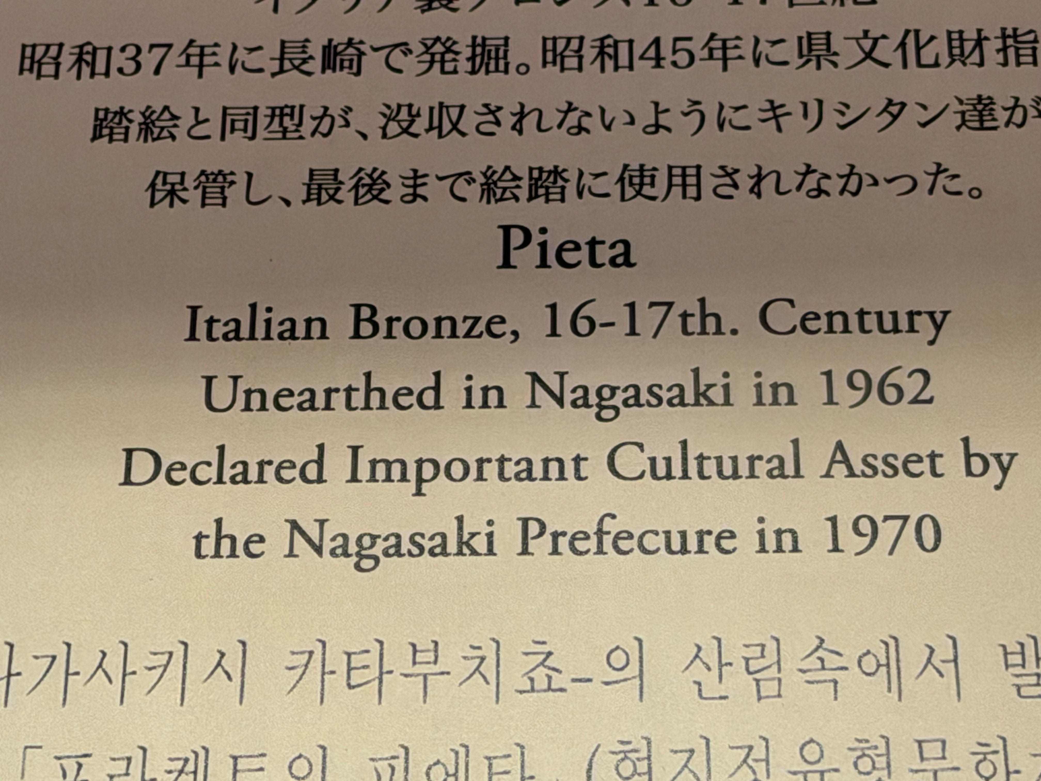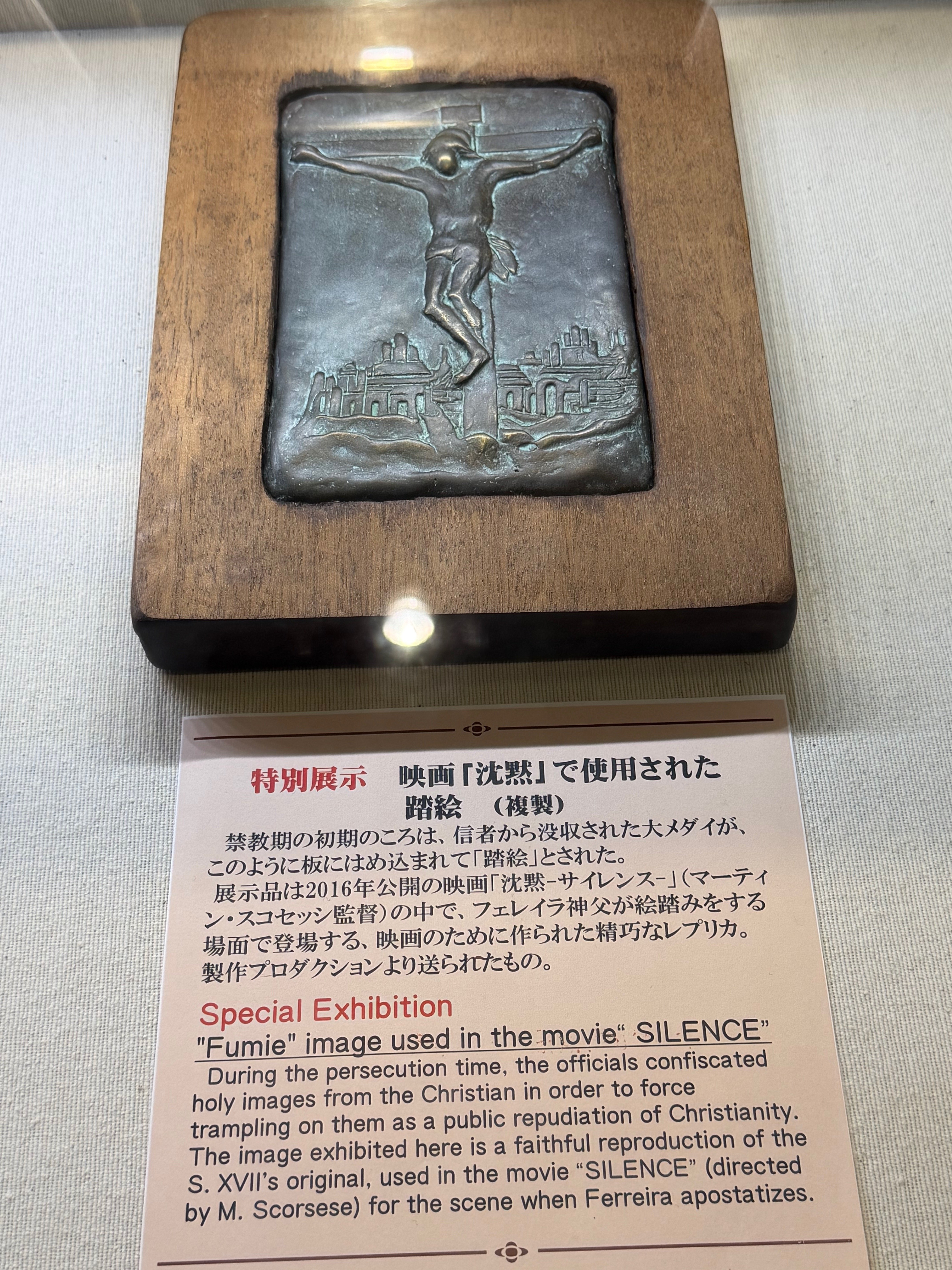 Another exhibit in the museum that I found of special interest was a replica of a Fumie Image that was used in the Scorsese directed film, “Silence.” The movie, and the book upon which it is based, depicts the story of the persecution of Christians in Japan. A missionary I served with in Japan, Van Gessel, translated the book from Japanese to English and was a consultant to Scorsese in the making of the movie. The subject image depicting Christ was seen in the movie for the purpose of being trampled on to demonstrate repudiation of Christ to avoid execution.