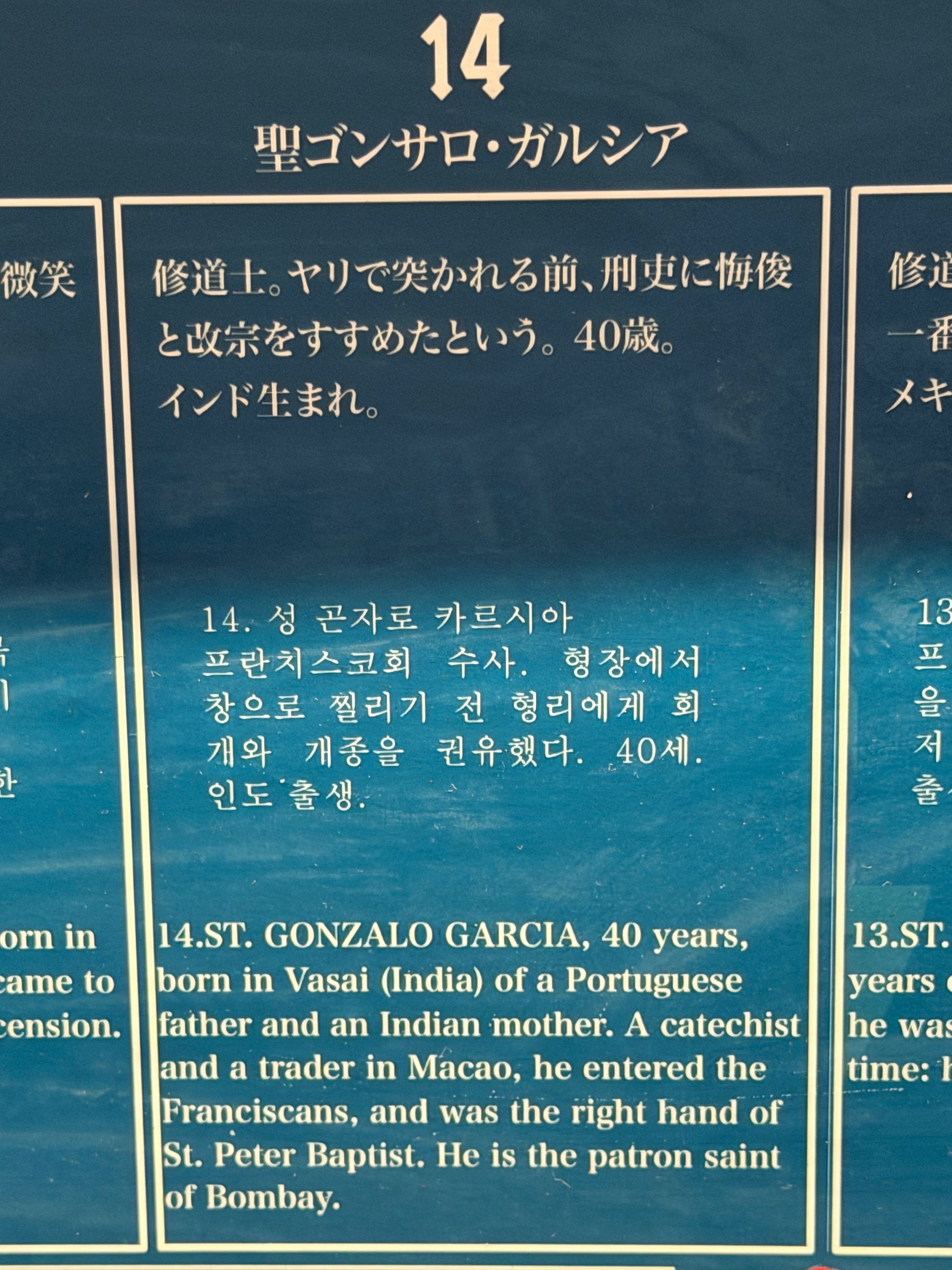 Another biography of note was that of Gonzalo Garcia born of a Portuguese father and an Indian mother. Significantly he is today the Patron Saint of Bombay.