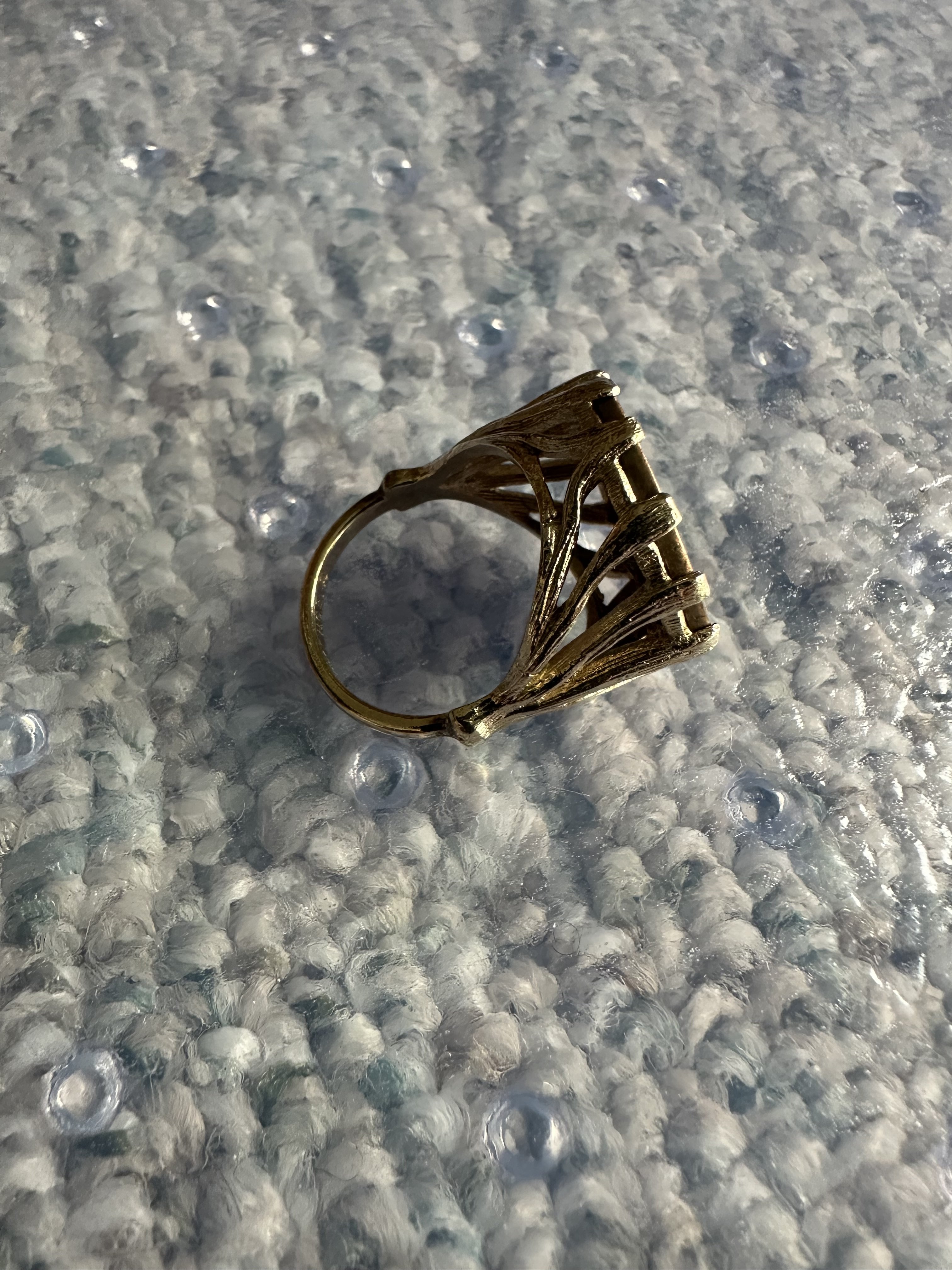 "On a ring, "HGE" stands for Heavy Gold Electroplate, which means the ring has a thick layer of gold applied over a base metal like brass or nickel. It is a form of gold-plated jewelry, not solid gold, and the "HGE" marking indicates a slightly thicker, higher-quality plating compared to a standard "GP" (gold plated) or "GE" (gold electroplate) mark"