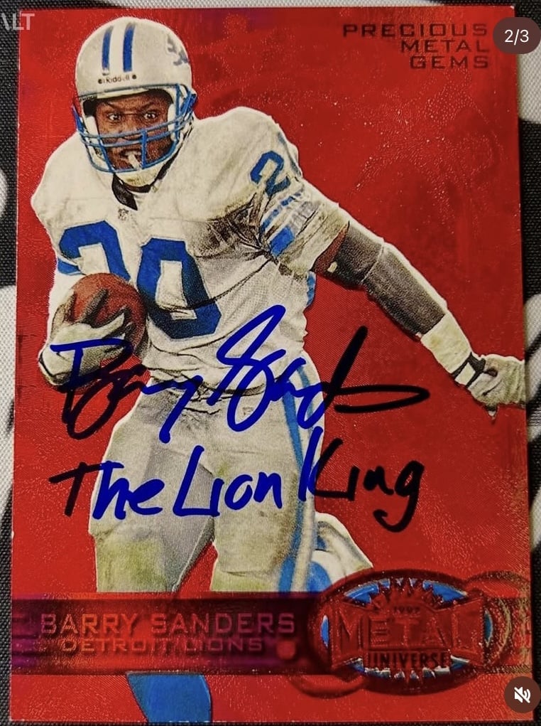 Was scrolling through IG last night and came across arguably Barry Sanders most valuable card with a pretty cool inscription.