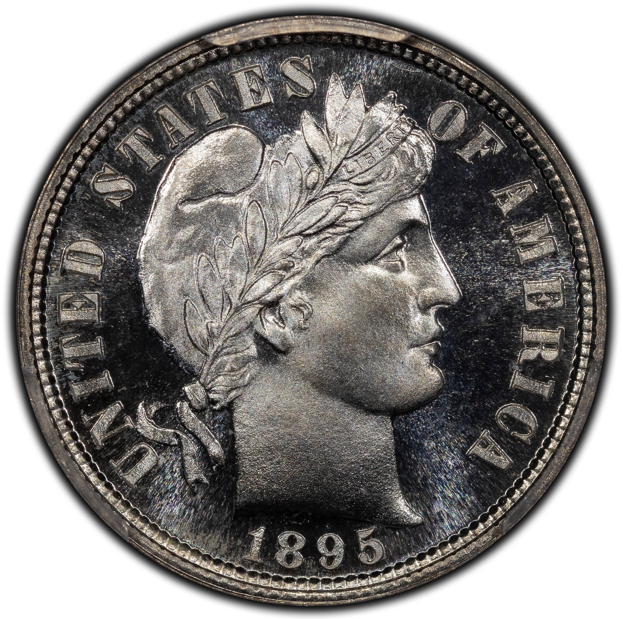 A strongly frosted, strongly reflective example of the date, this CAC pop 14/4 is a blazer. A dip has revealed the deep whiteness of the coin like the day it was struck, and a strong cartwheel is present on both obverse and reverse. No hairlines are to be noted on this coin aside from a minor line running NW/SE on diagonal to the cap of Liberty. PR68CAM quality in my opinion, this coin stands out for its technical prowess. 1895 Proof dimes show a mintage of 880, slightly above average for the series. Quality for the date is usually high, with many examples showing strong frost and a strong strike. Die wear appears to have introduced strong cartwheel luster to many examples, which could be seen as a detractor for some. On this example, it is seen as a positive and adds some character to a lovely example. DCAM coins are rare, and well contrasted CAM examples are difficult to find.