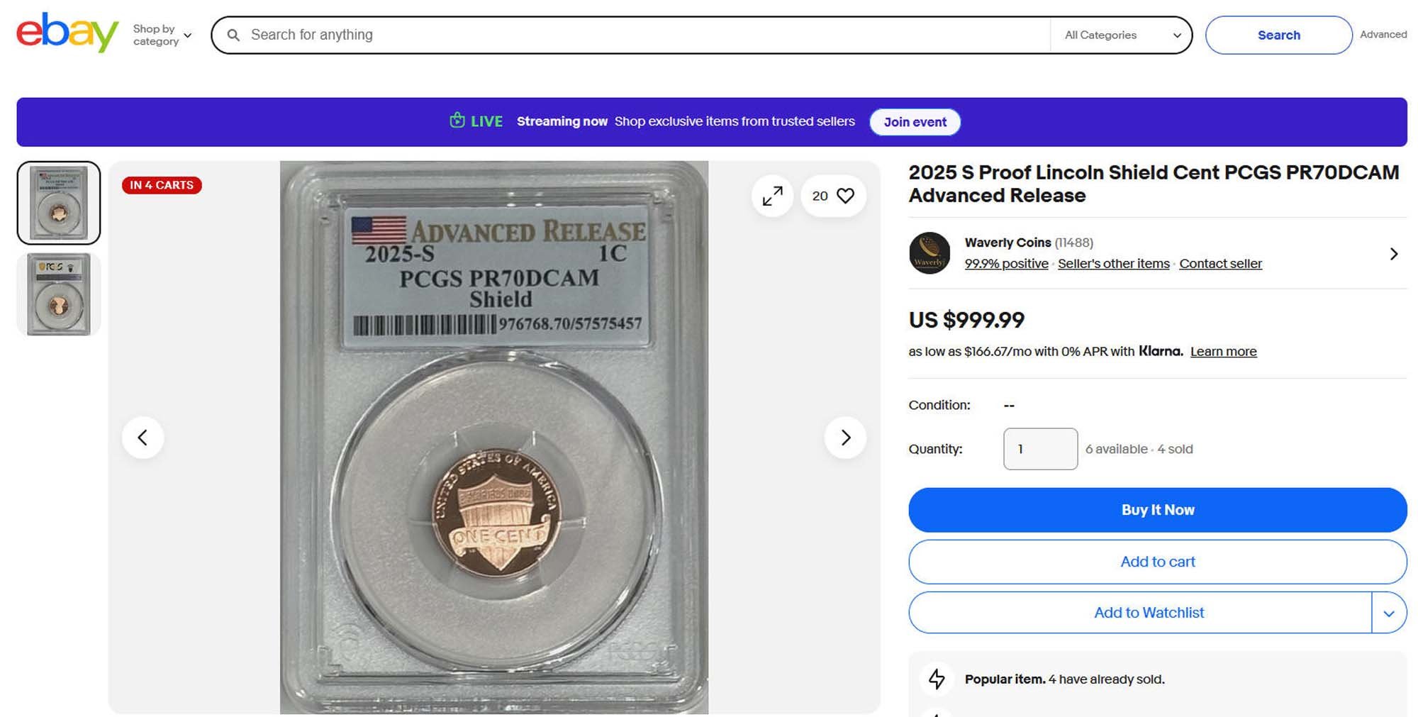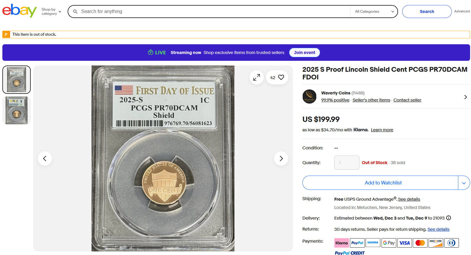 It appears 2025-S Proof Lincoln Cents are going for moon money on eBay.