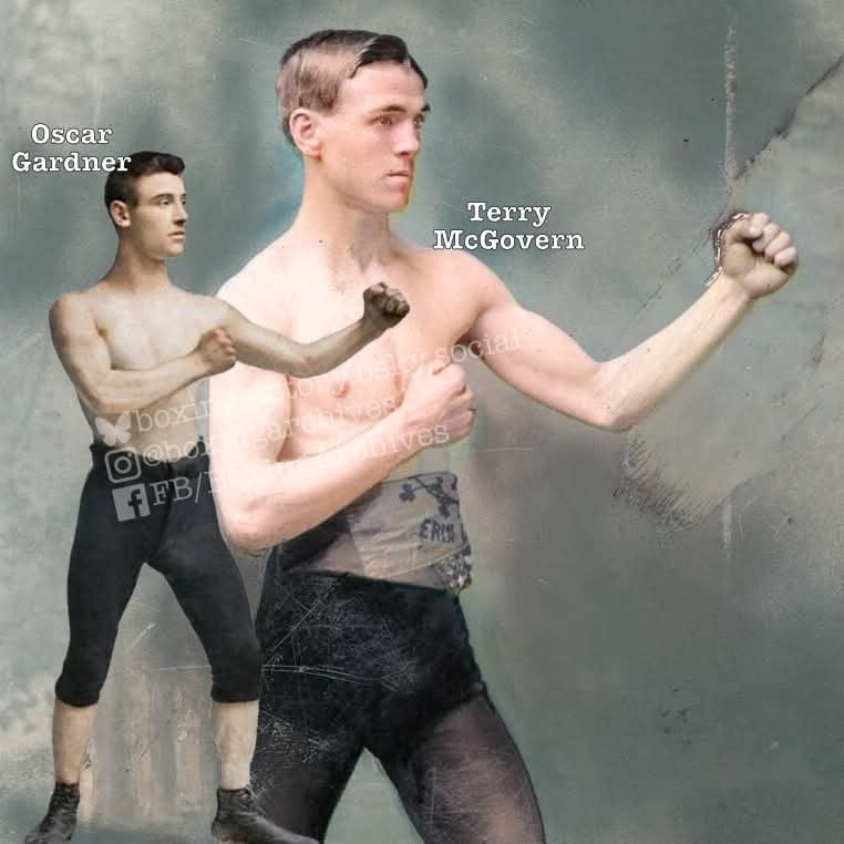 Terry McGovern vs Oscar Gardner, 1900. Gardner was a good fighter, and he could punch.