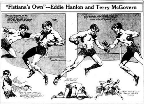 In 1904, PHILADELPHIA, Oct. 10.-Terry McGovern was delivering such severe punishment to Eddie Hanlon of California in the six-round bout at Industrial Hall that the police stopped the contest in the fourth round. Hanlon was hanging on the ropes in a helpless condition when the police interfered.