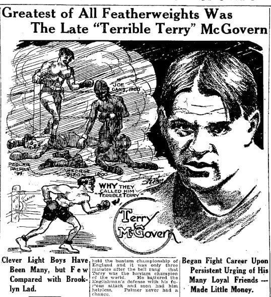 Like I said, "Terrible" Terry McGovern was no joke. He was an Irishman from Brooklyn, New York, they called him "The Brooklyn Terror", he struck fear in hearts of his opponents and up until he met his kryptonite in Young Corbett II, McGovern was a wrecking machine.