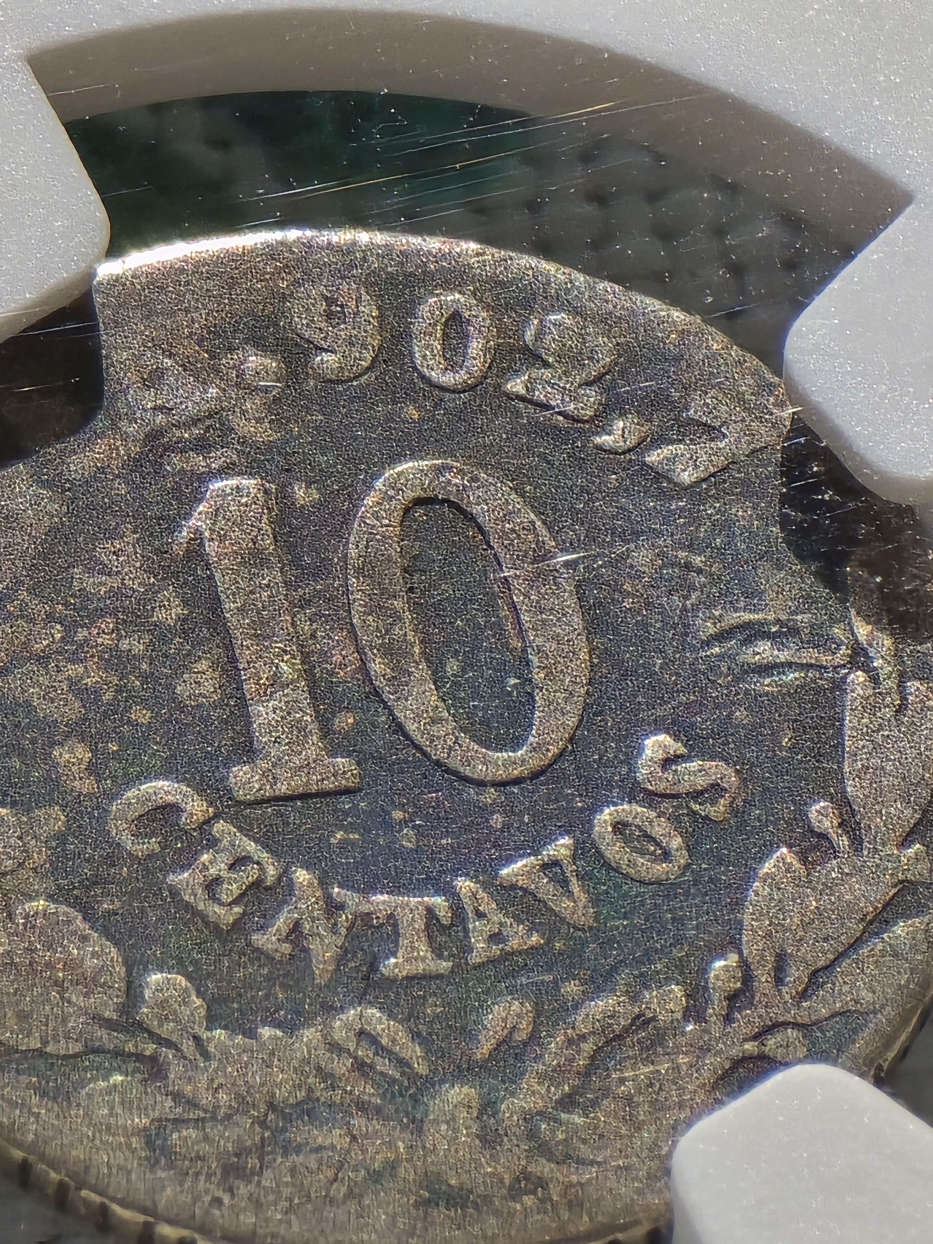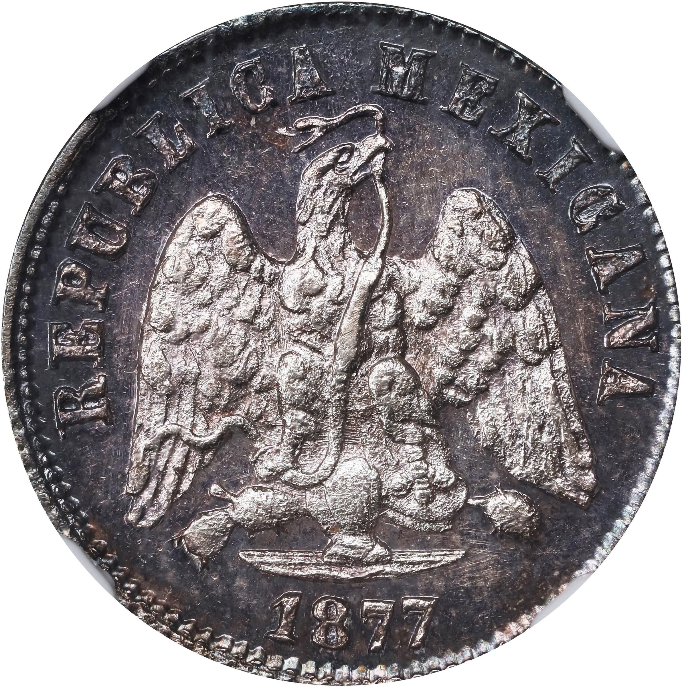 The suspicious part to me comes in the reverse, in the CENTAVOS as the T and the N are suspect. That said, if you look at the T in the 1874 is clearly different from the 1877. But the N looks different. Again, damage? Circulation? Something else?