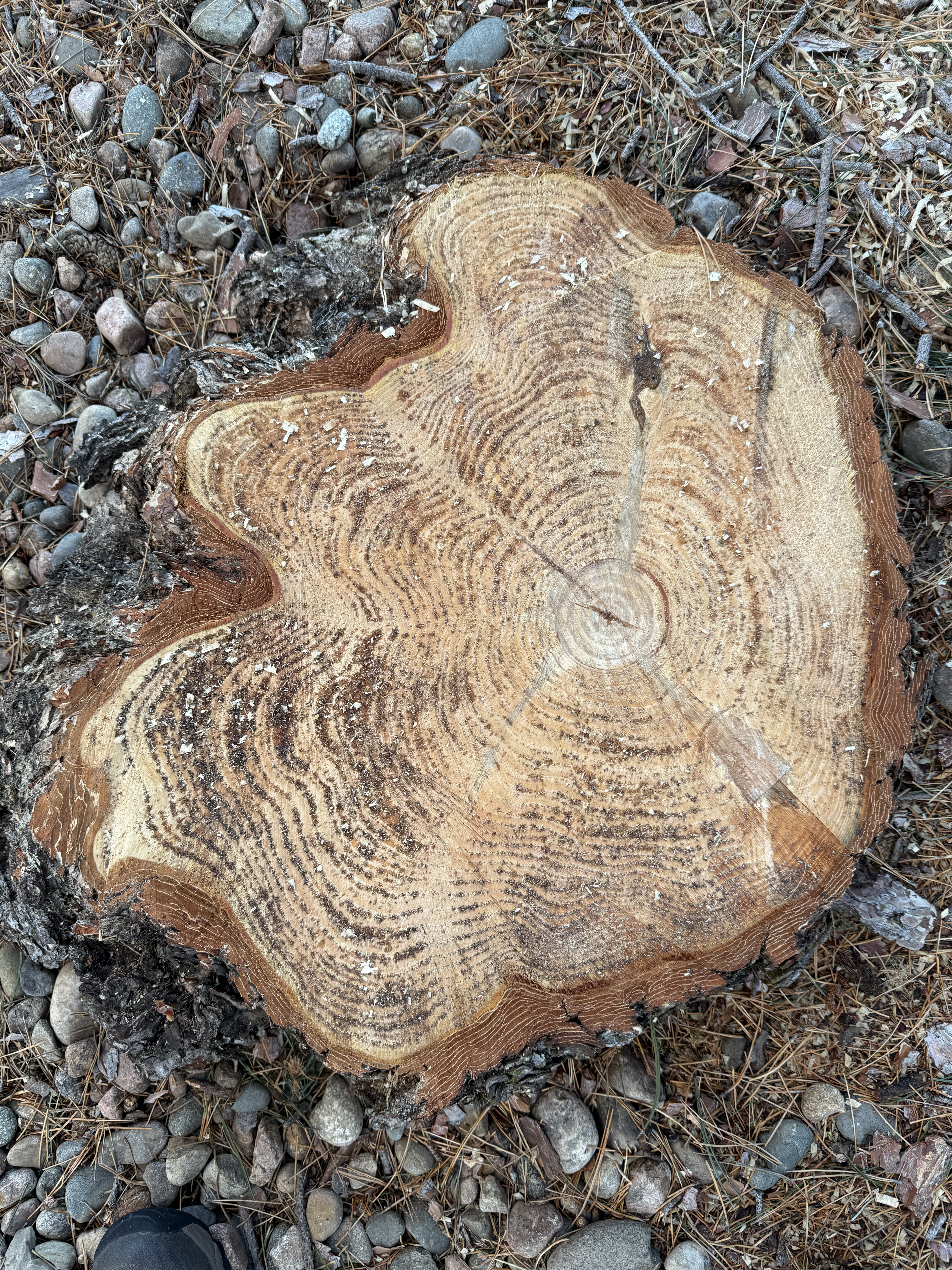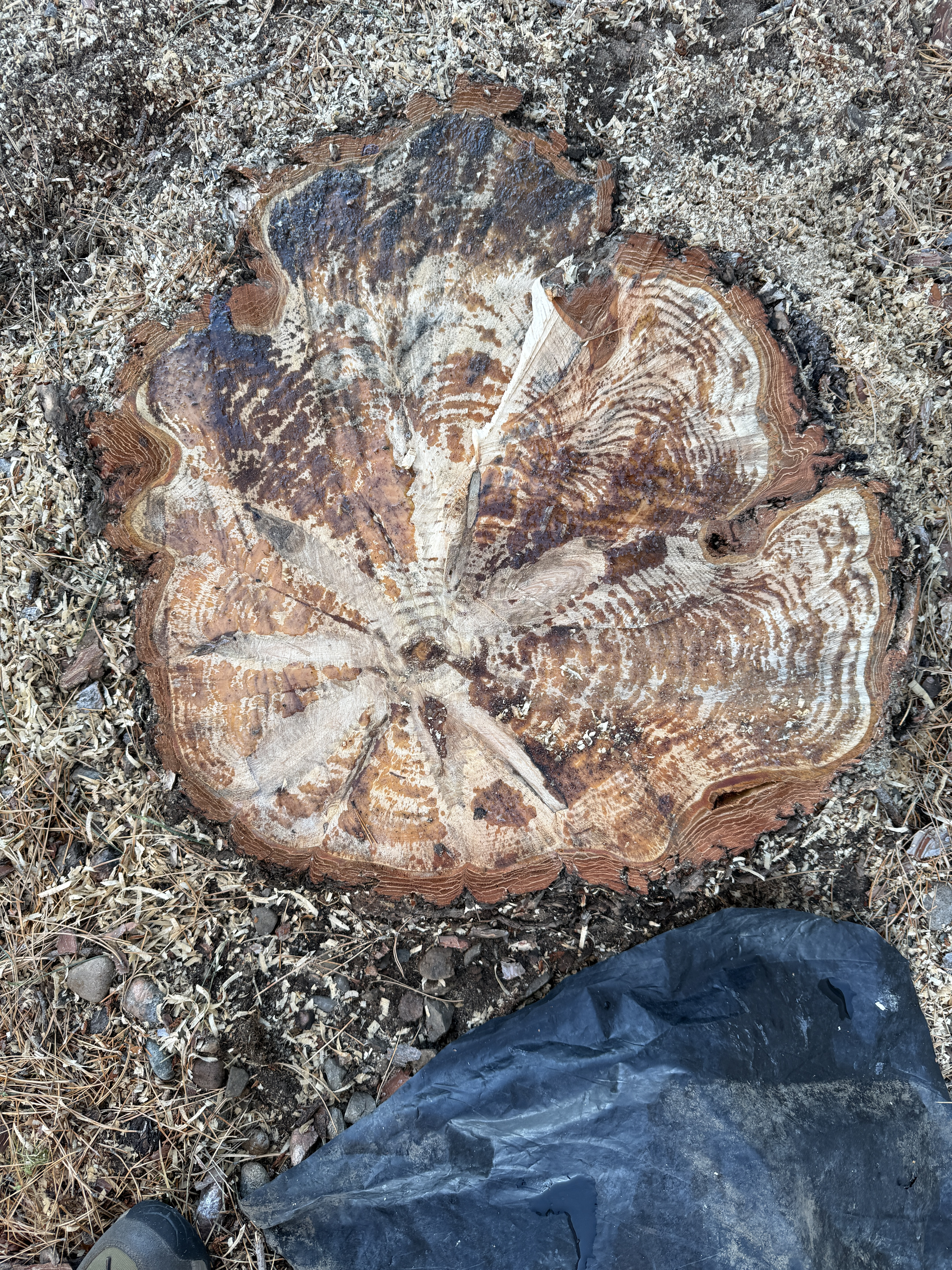 I asked for another 6 inches of cut, thus the stump & the 6 inch puck remain.