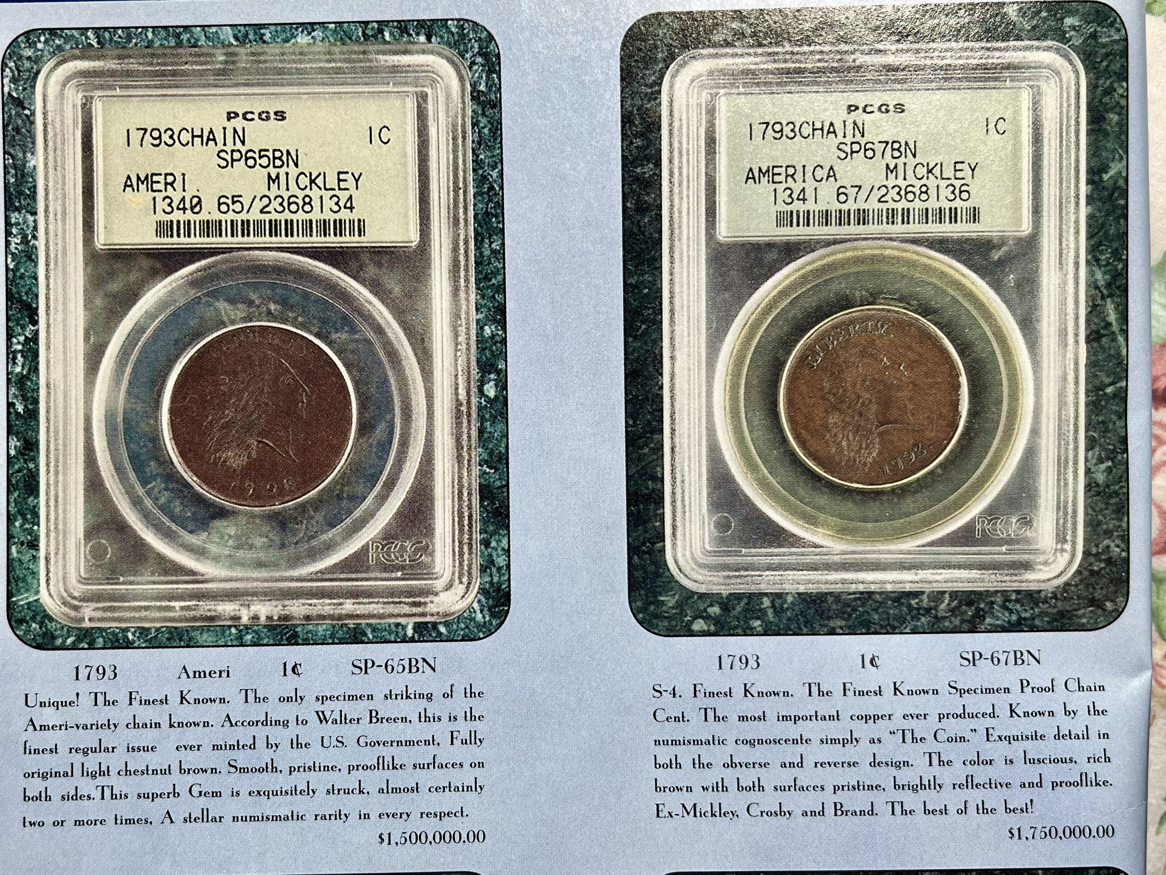 You are correct, I was going from memory from a 1995(?) advertisement from Jay Parrino, who offered both of the superb Mickley Chain cents in his catalog. The one on the left is the one I posted, but the one on the right is “The Coin “. I shall have double checked: