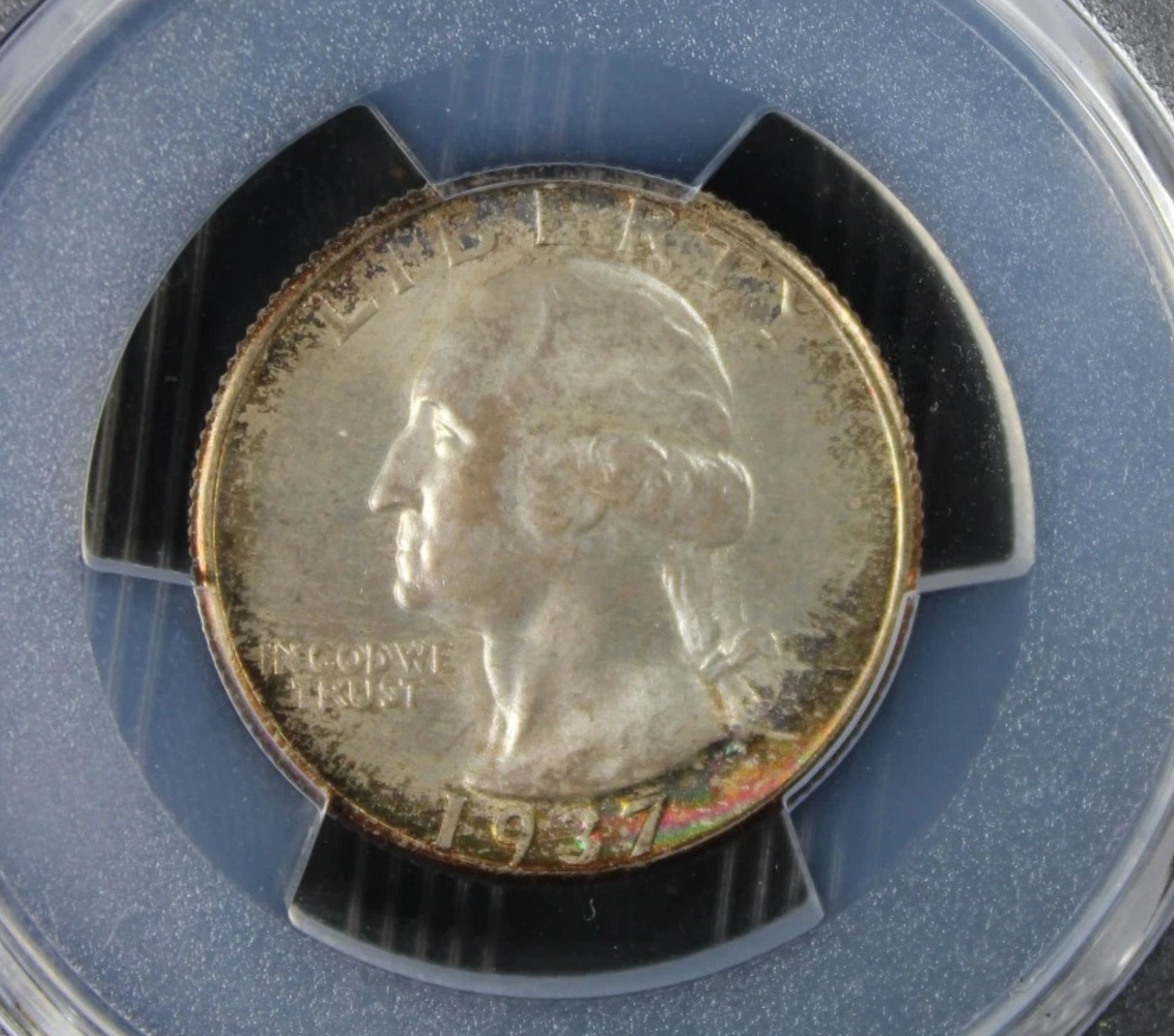 I was trying to figure out what the distinct pattern is on the quarter. Could this be toning from within a canvas bag? The reverse and parts of the obverse show this distinct pattern toning.