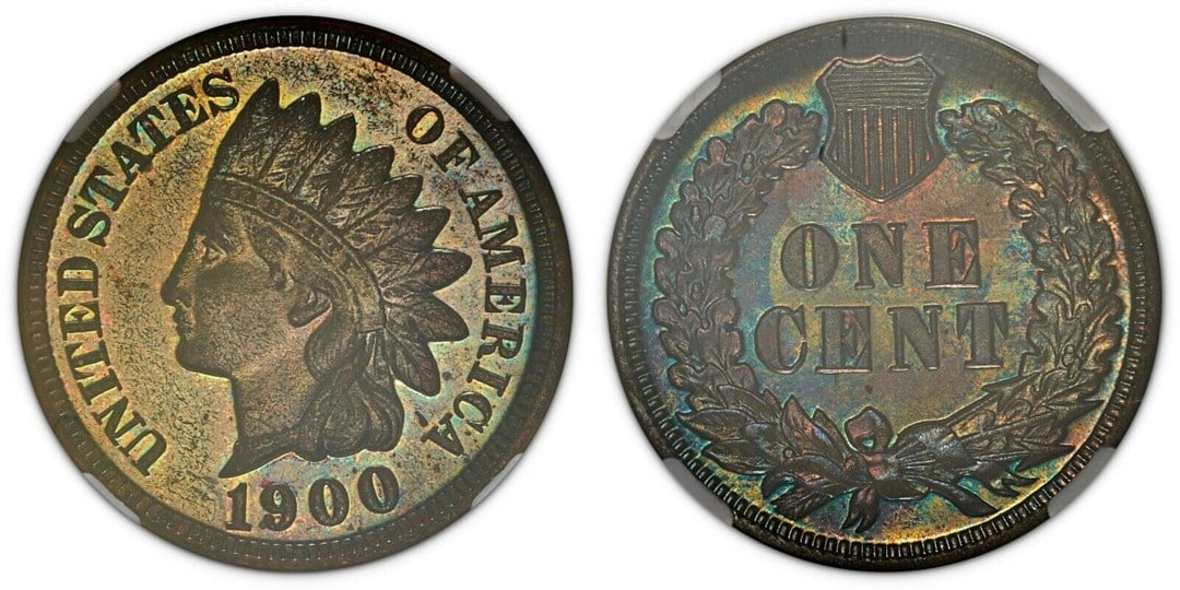 Sea-green, reddish, and blue tints make an appearance, making for a lovely original skin. Fields flash with healthy proof brilliance, while the central devices are lightly frosted.