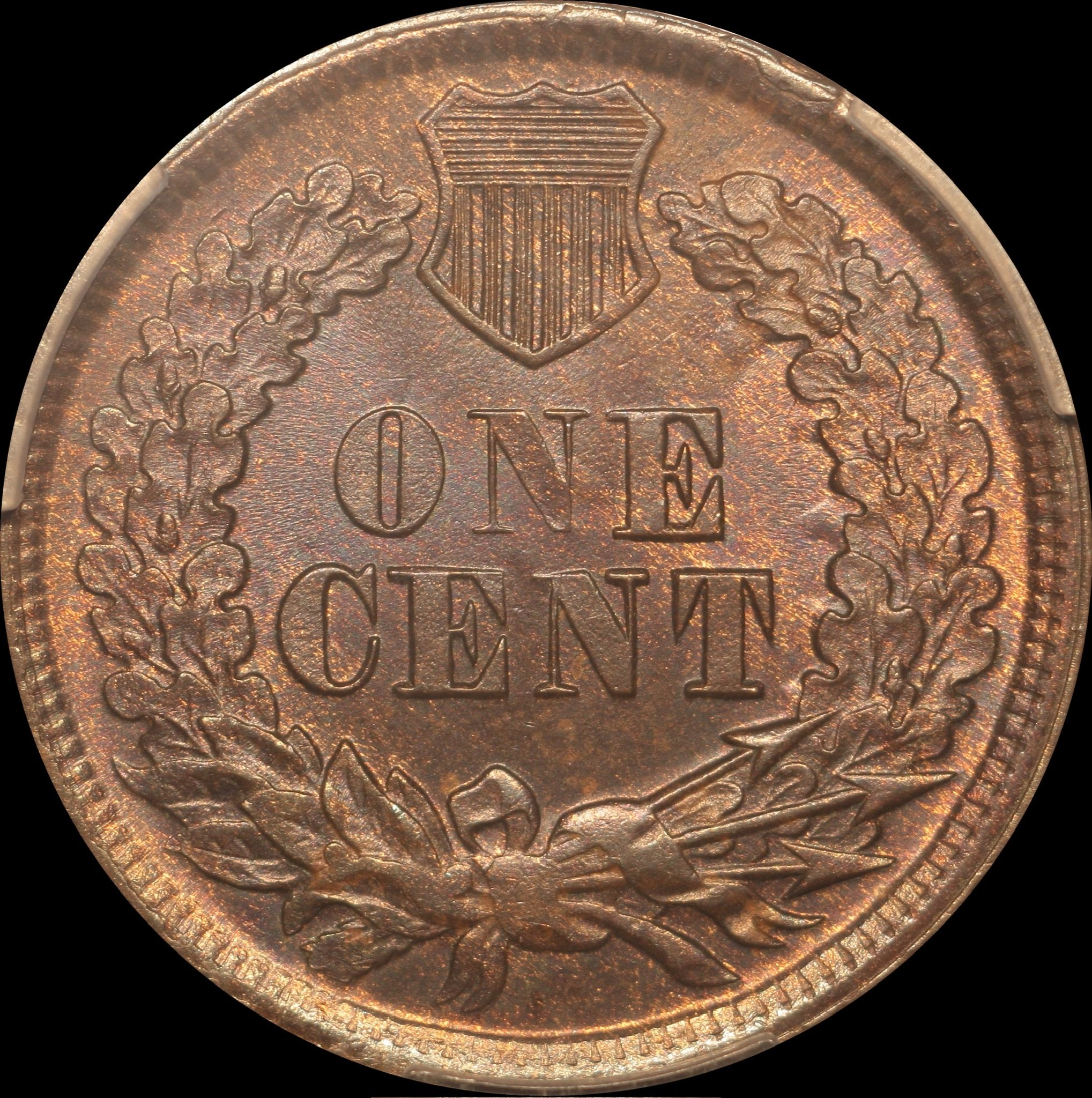 The 1865 Plain 5 S-2 variety is extremely rare; this is the only RD example known & originally from the Dr. Tom Fore collection. There are multiple features: 1) remnants of all 4 digits of the date in the denticles below; 2) a clash mark running through the upper area of the headdress feathers (it actually begins in front of the first feather); 3) a jagged swordfish looking clash mark in front of the neck.