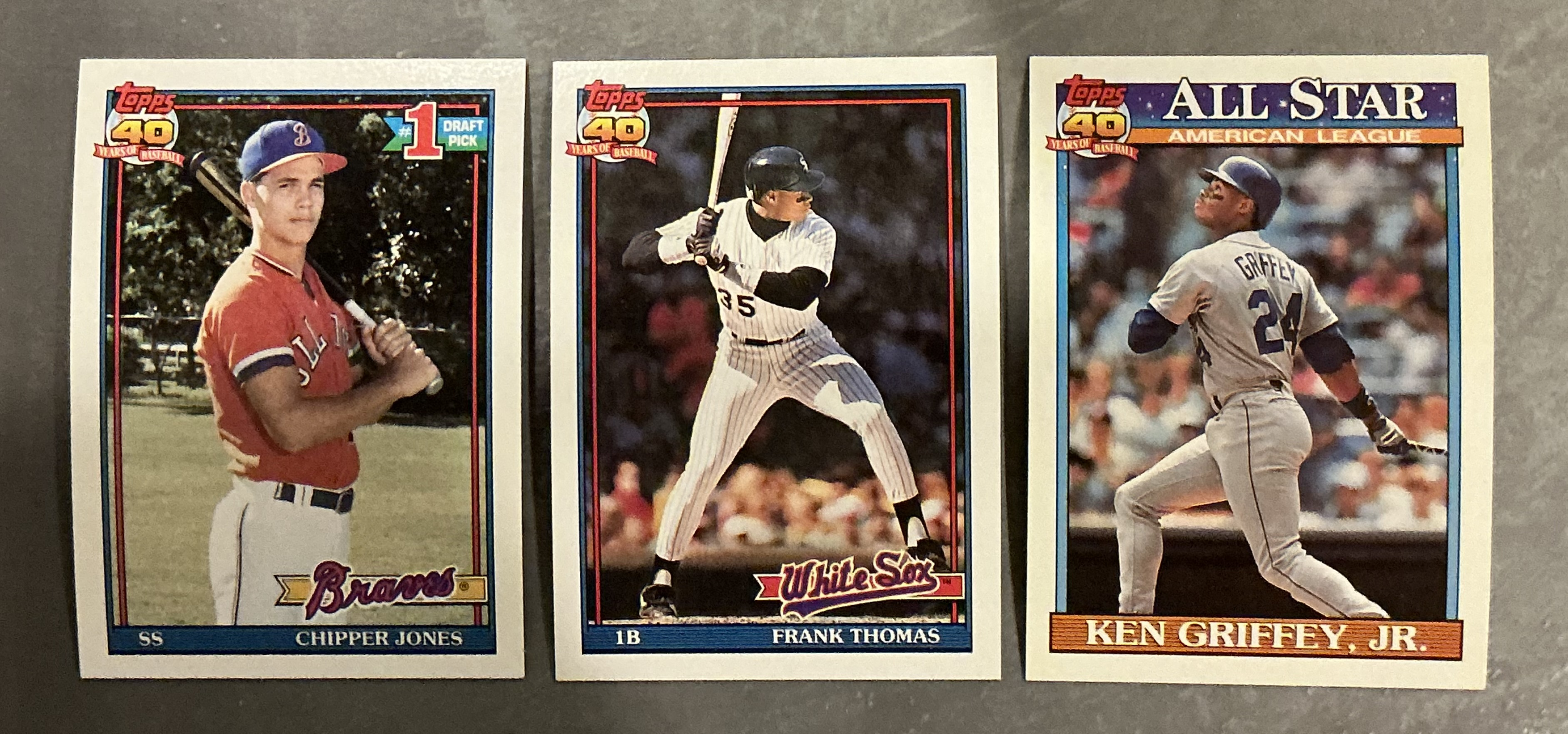 Looking forward to some wooden borders! Been a blast from the past so far... I had forgotten how truly epic the photography was in the 91 set. I also remember being so hyped for the 89 set... after they brought back Olympic Team cards in the 88 Traded set, I was super pumped about them bringing back Draft Pick cards. Especially the Abbott! I never really understood the colored borders of the 90 set, but always loved the "color match" cards like the Grace and Griffey. Also love following the 1990 Topps blackless threads out there.