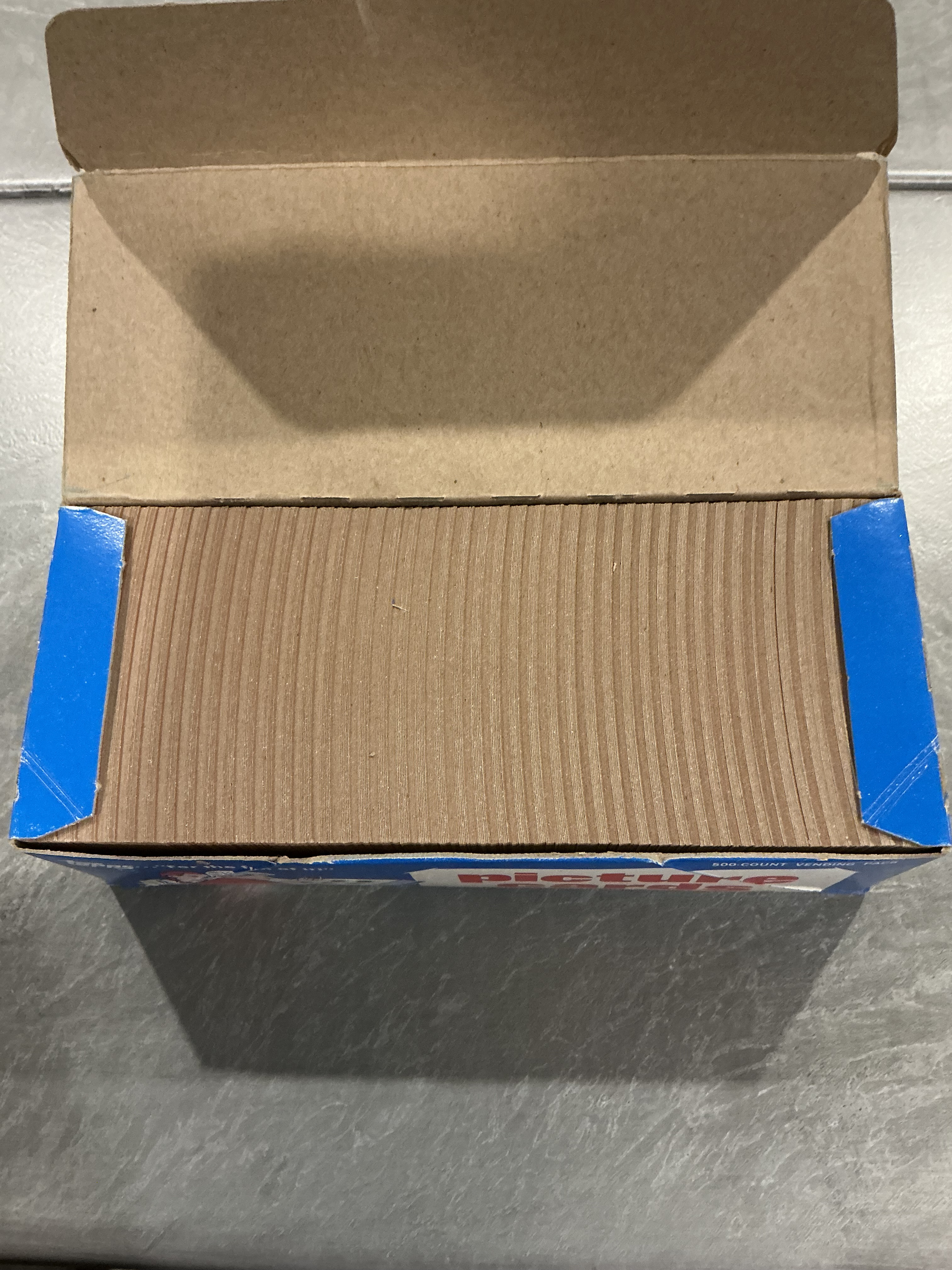 Nice clean vending pattern. For those less familiar with vending, the cut of the card sheet grain should flip every 5-7 cards creating this wave pattern in an untouched box…