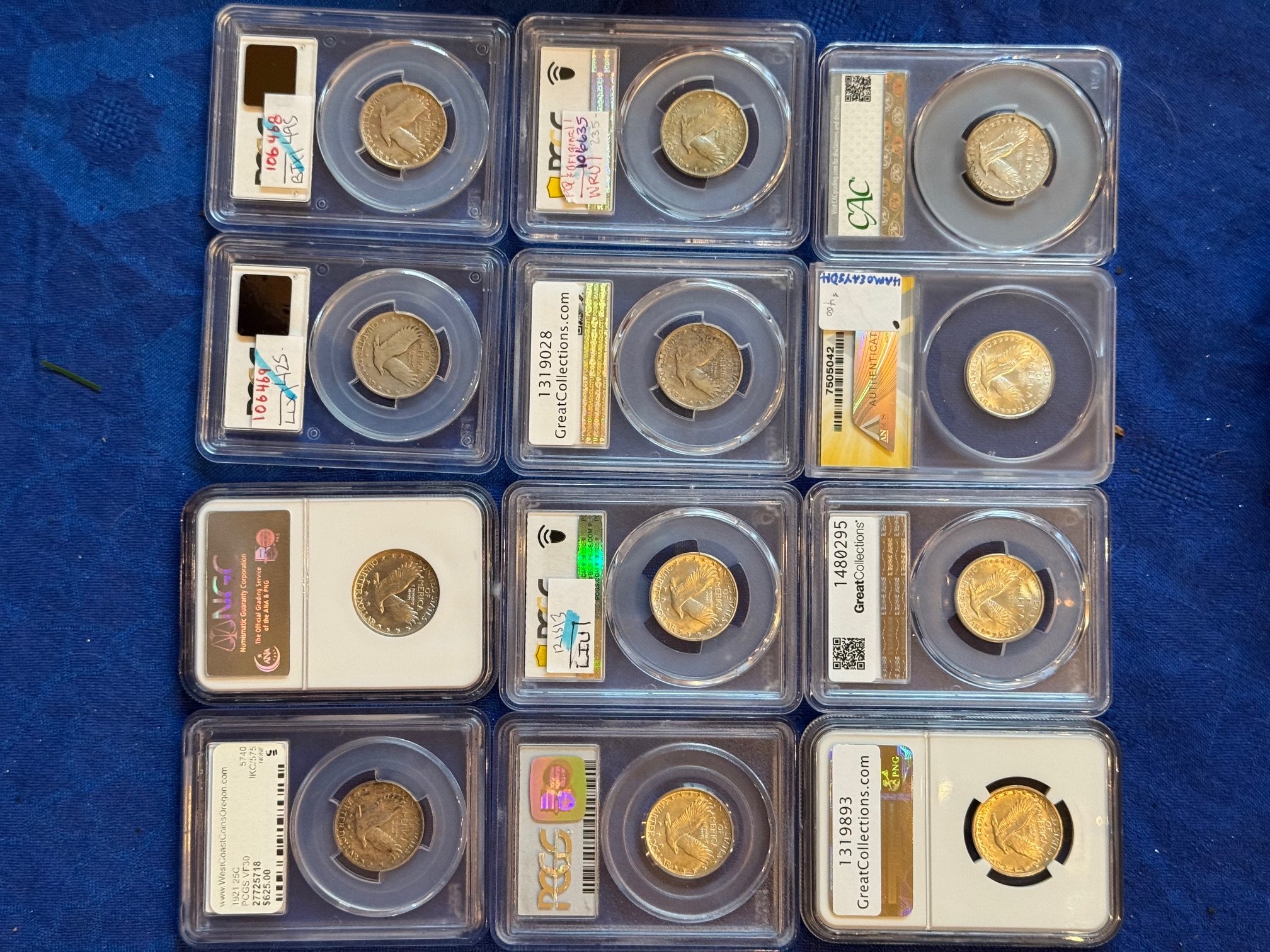 I put silver Washington quarters in album slots representing the encapsulated coins.