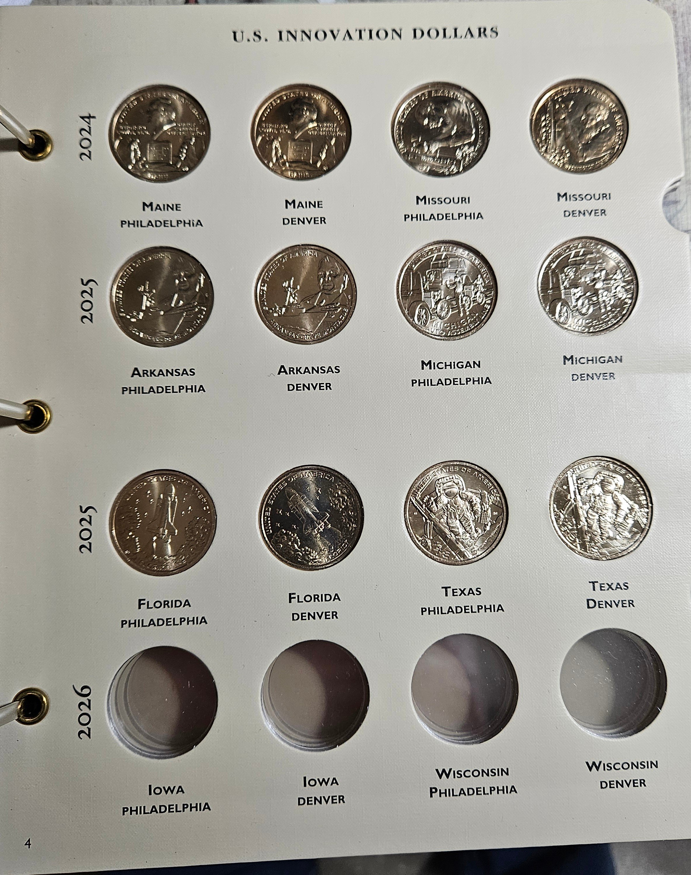 I put silver Washington quarters in album slots representing the encapsulated coins.