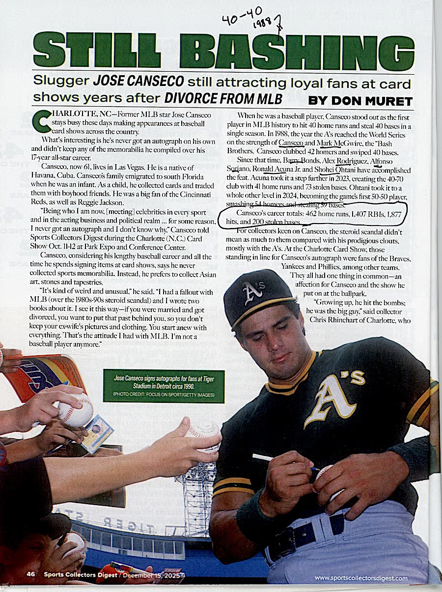 Why it matters: This is where Canseco becomes a modern collectible. Scarcity is intentional, design is deliberate, and his career is actively curated for a new generation of collectors.