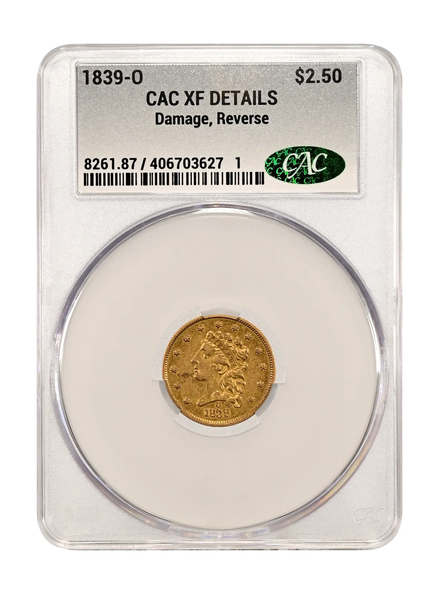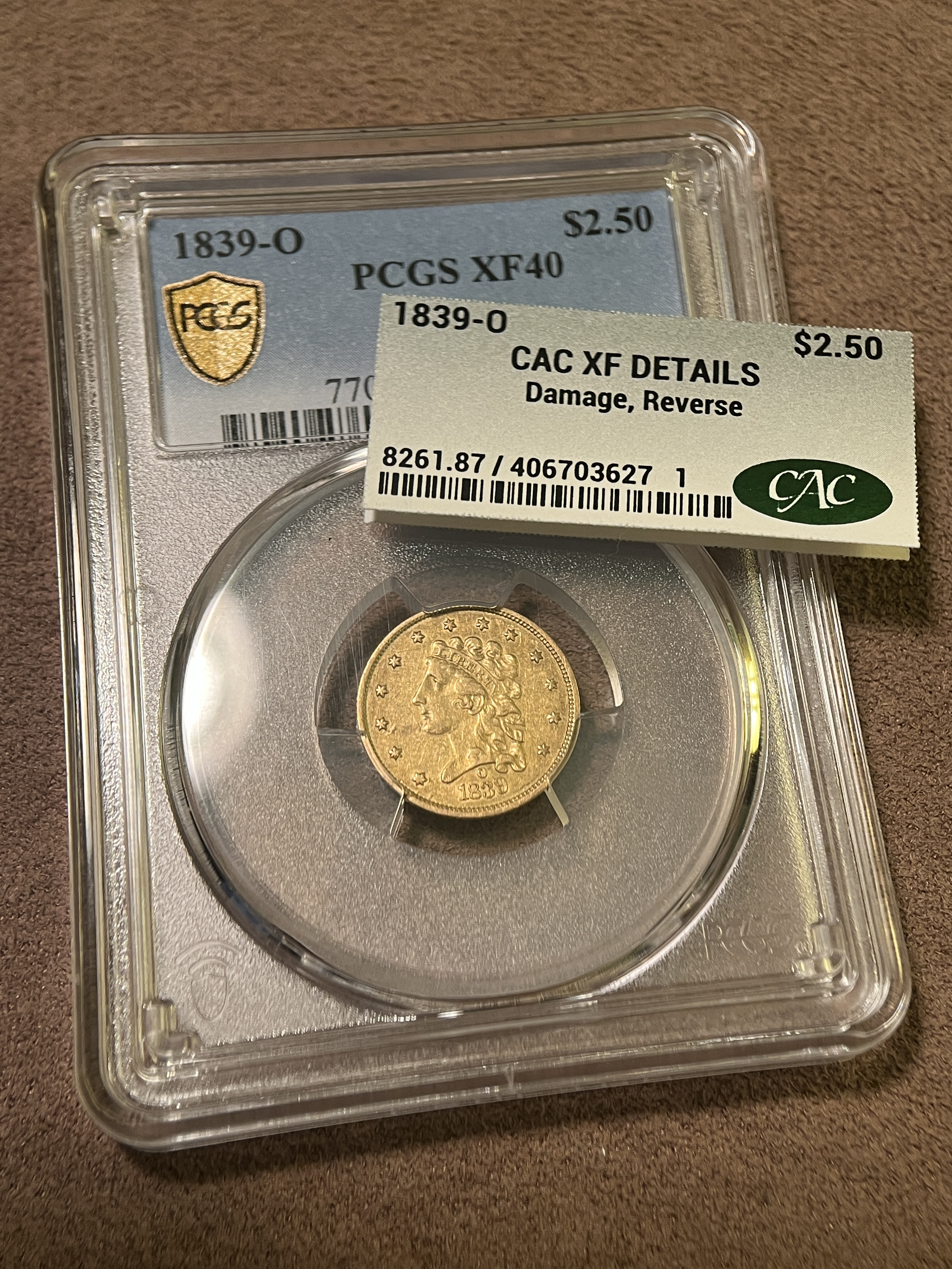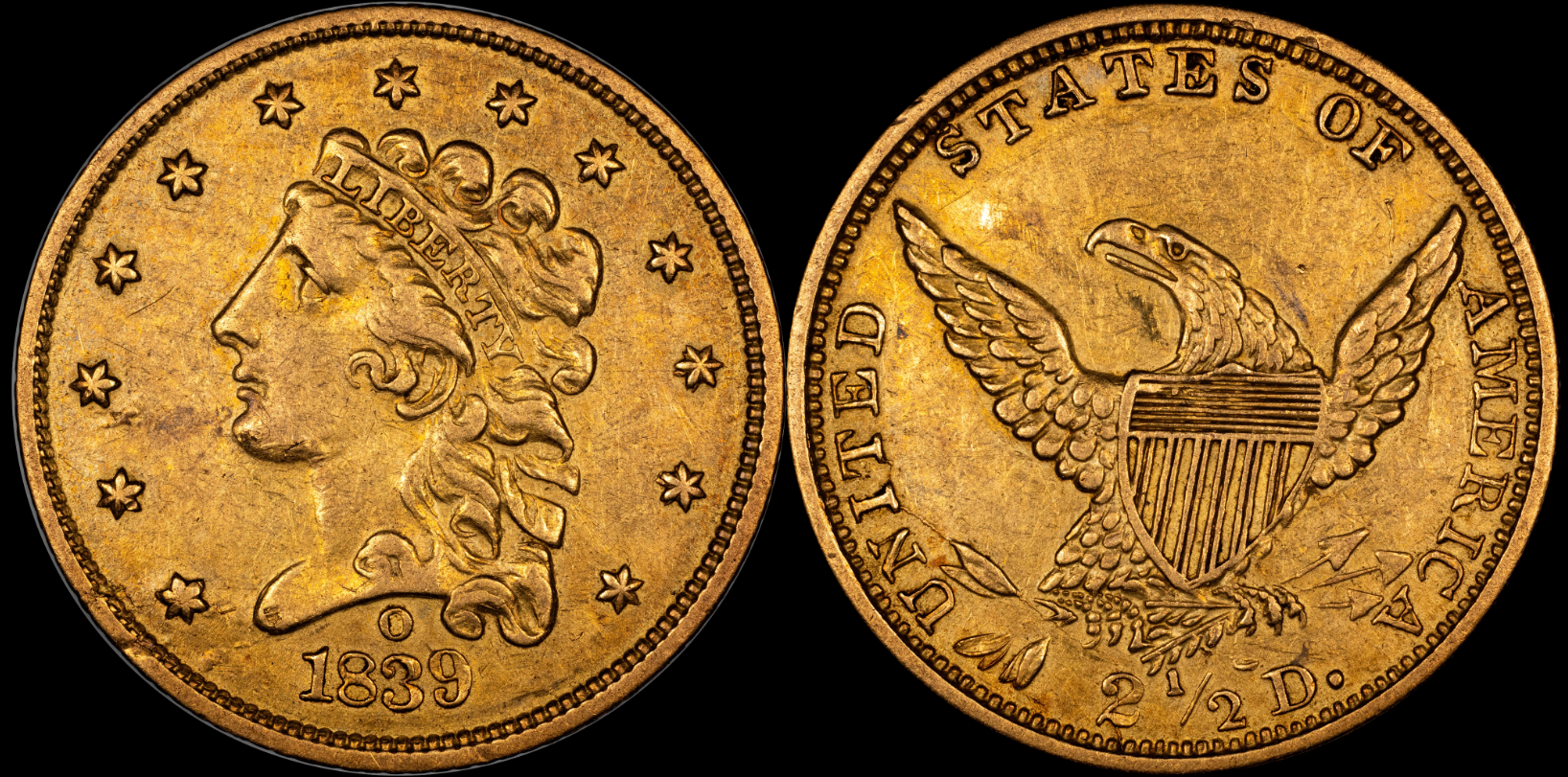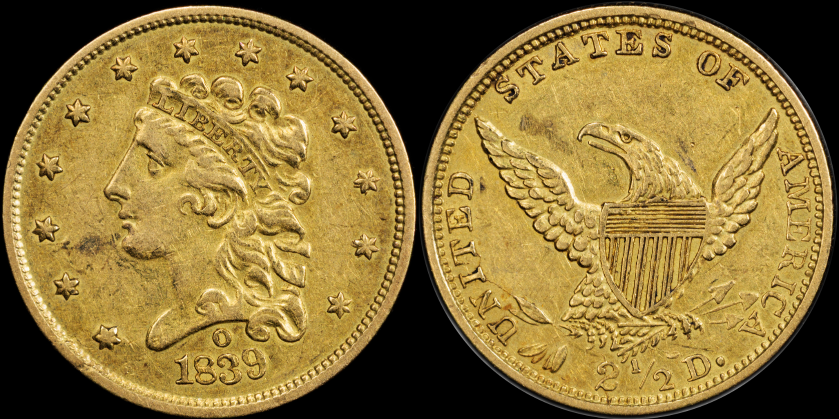 Grade Posted GTG: 1839-O $2.5 Classic Head Quarter Eagle