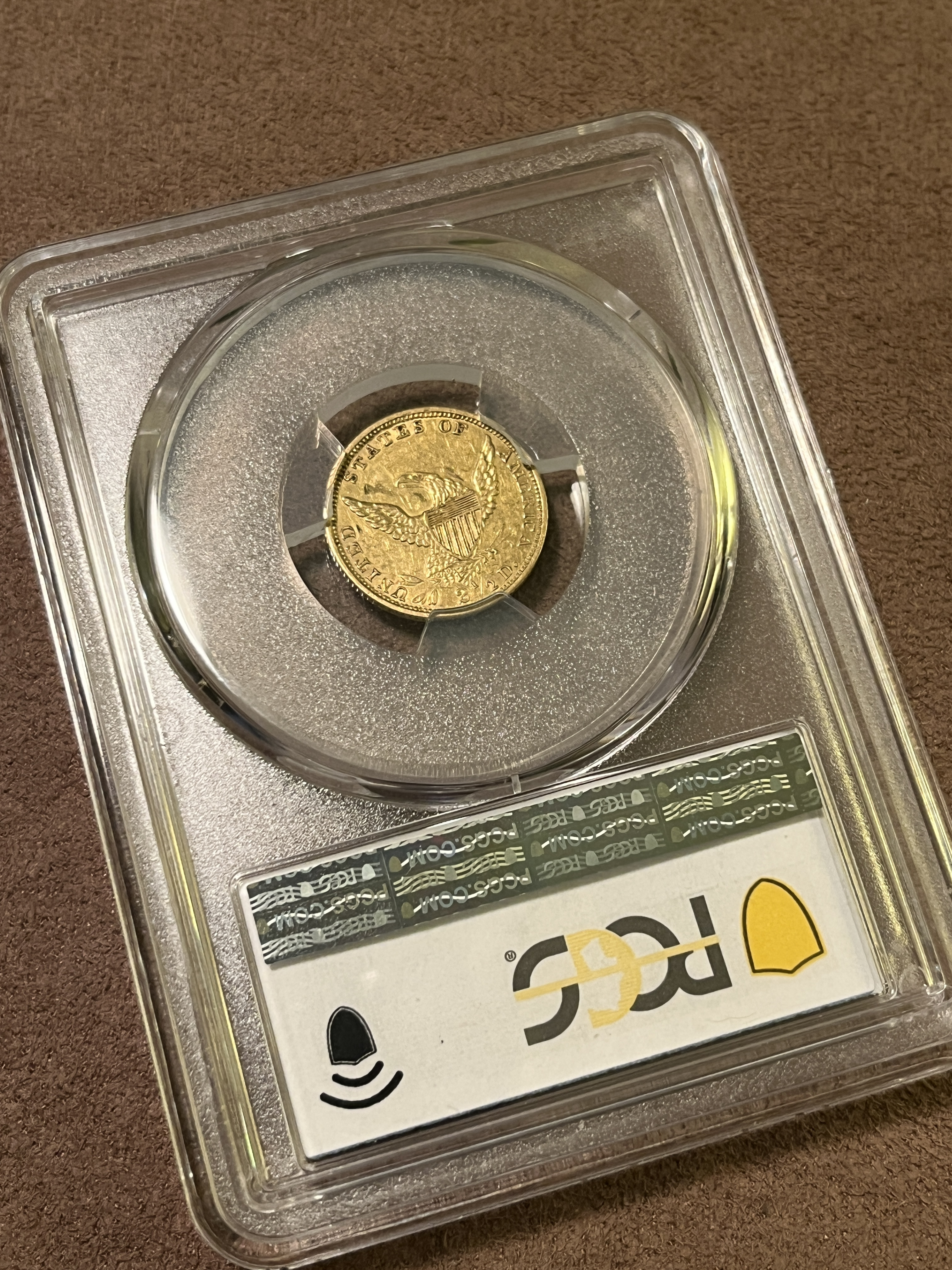 I don't know too much about this coin other than that it came from an inherited collection according to the dealer that I bought it from. I wouldn't call it 100% original, as it appears to have a light old cleaning. However, it looks better than most of the classic head gold that I've seen. Luster is still evident on both sides. The darker spots in front of her chin on the obverse and below the eagle's head on the reverse are very light abrasions.