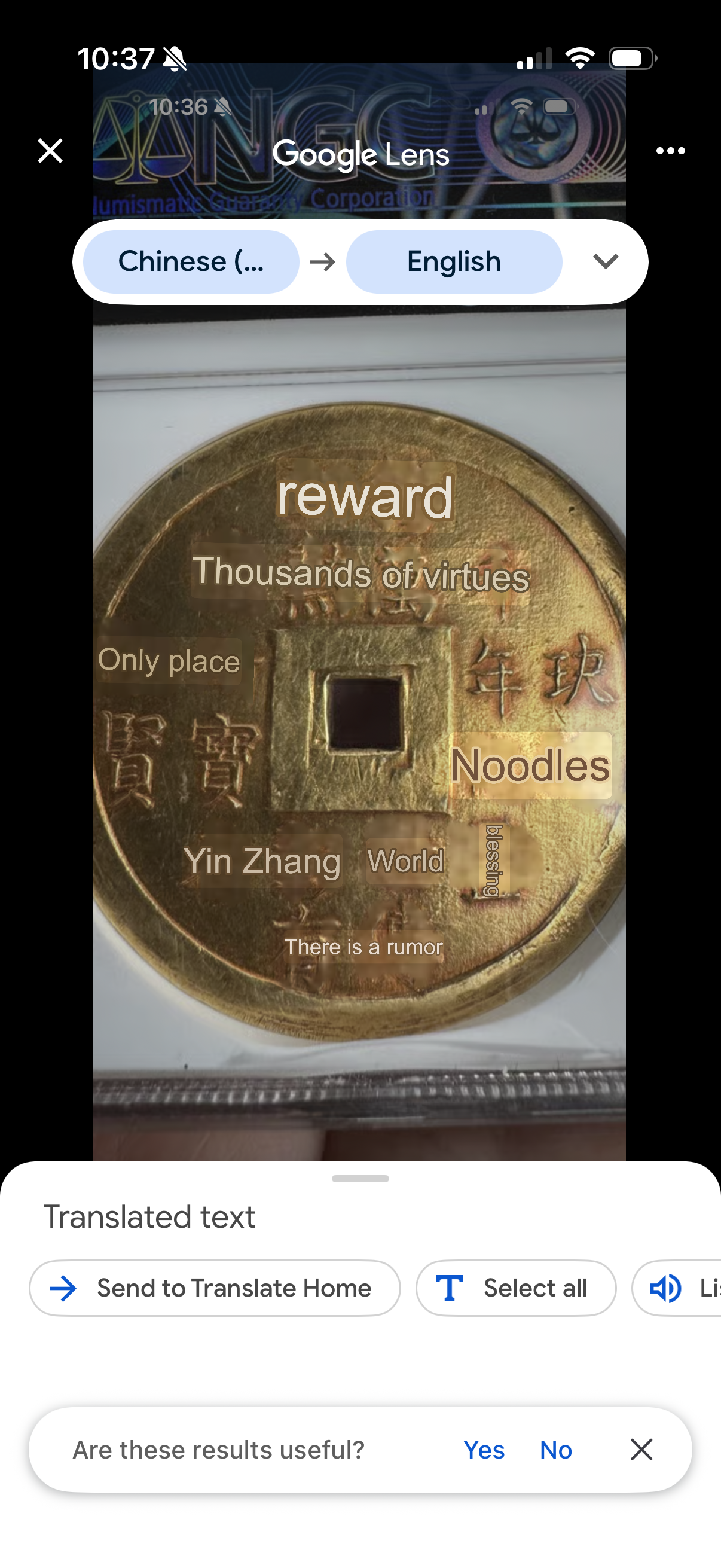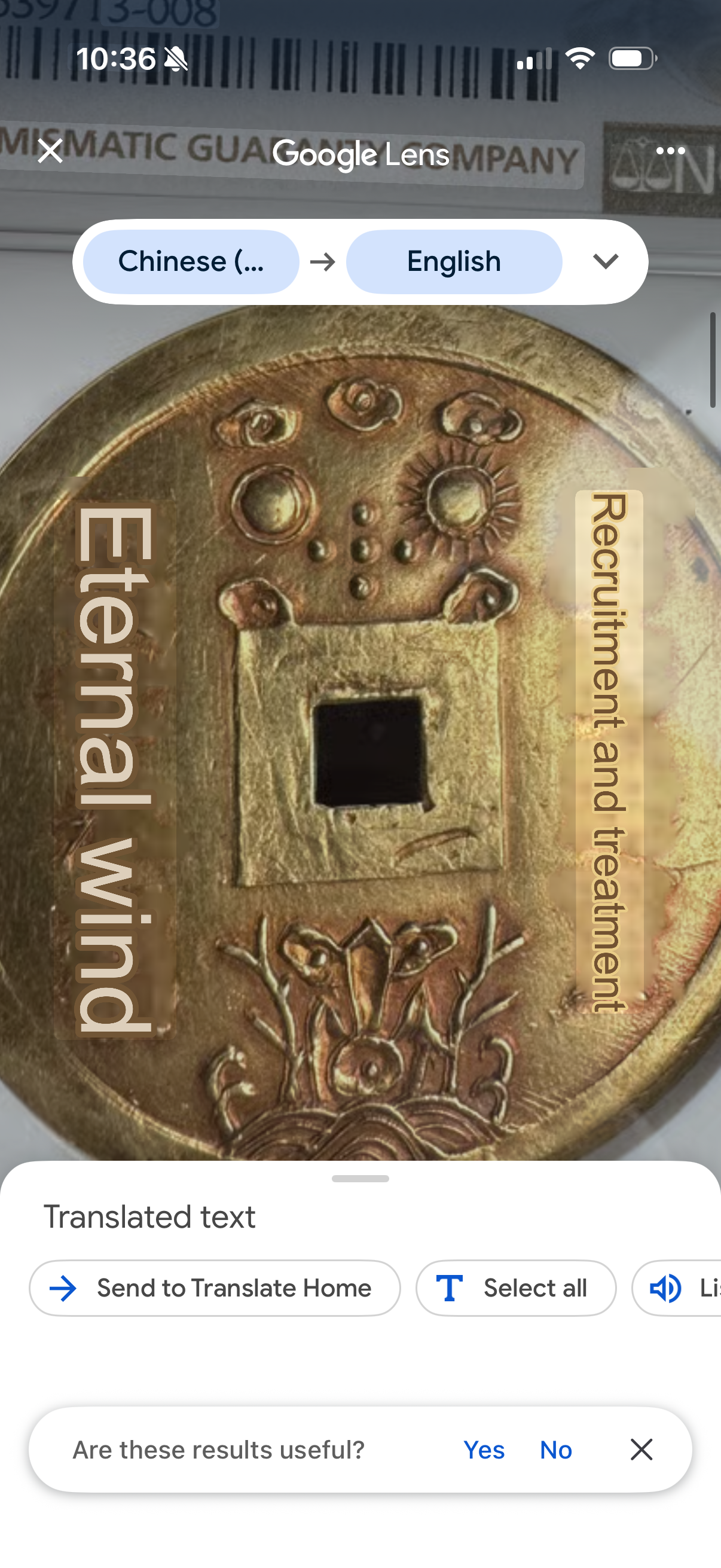How to translate inscriptions from a coin using my I phone 16????
