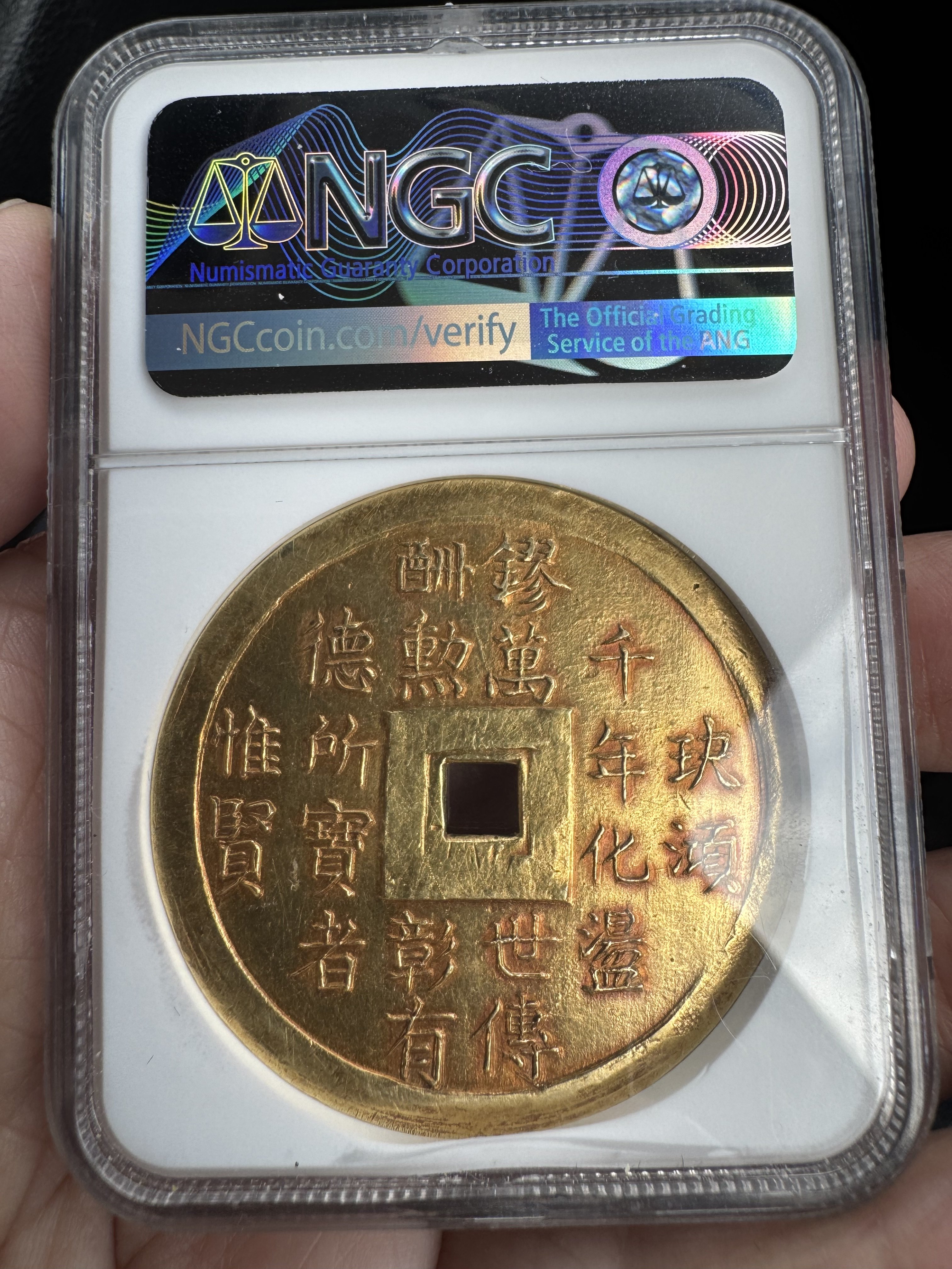 Rev. In Chinese : "The precious stone khuyet and the cinnabar, in a thousand years, become pure gold, transmissible to ten thousands generations. Thereby, we aknowledge the merit and we emphasise the virtuous men, because only wisdom is precious."