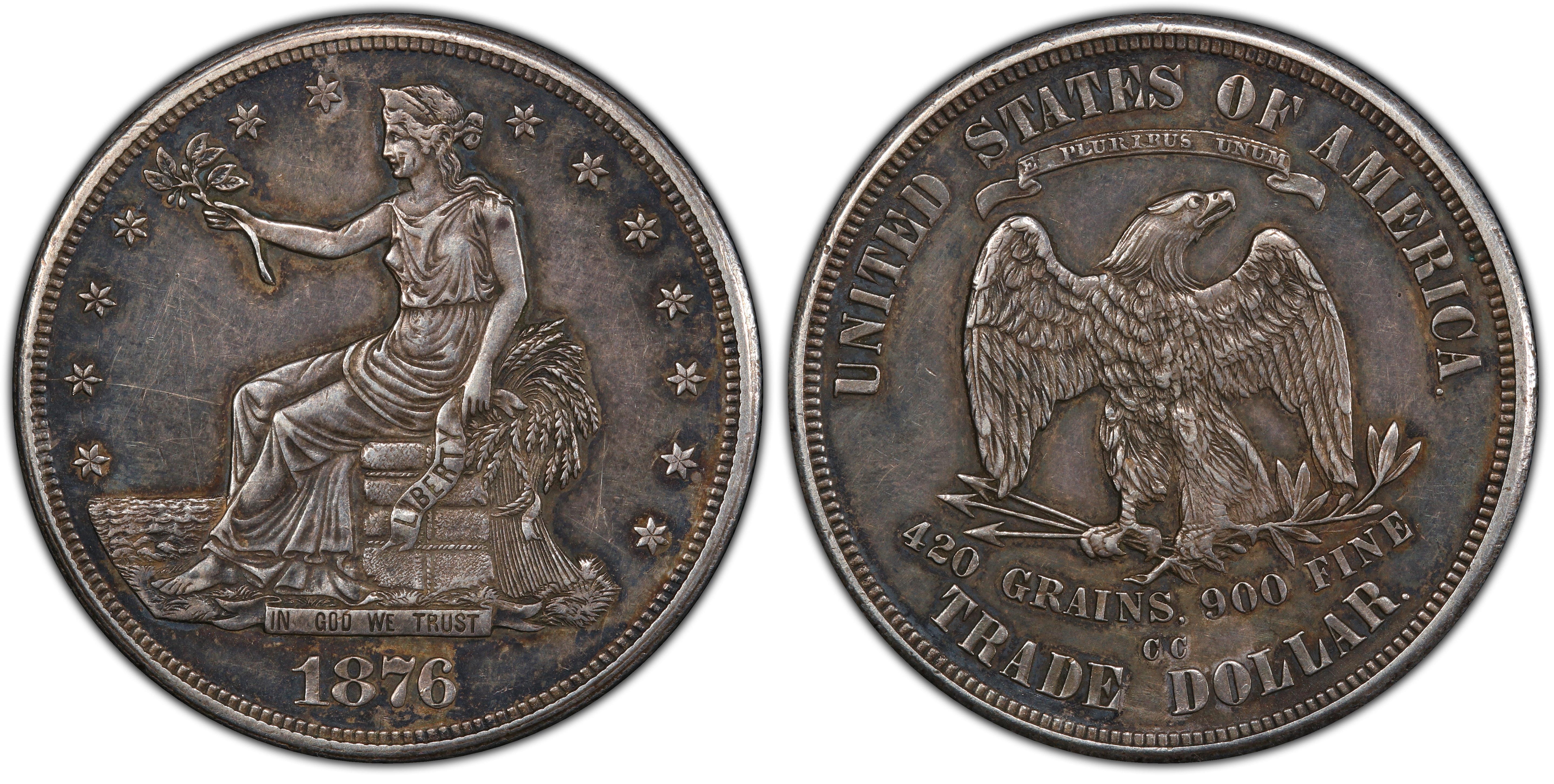 1876-CC Trade $1 Type 1 Rev PCGS AU58 #84996028