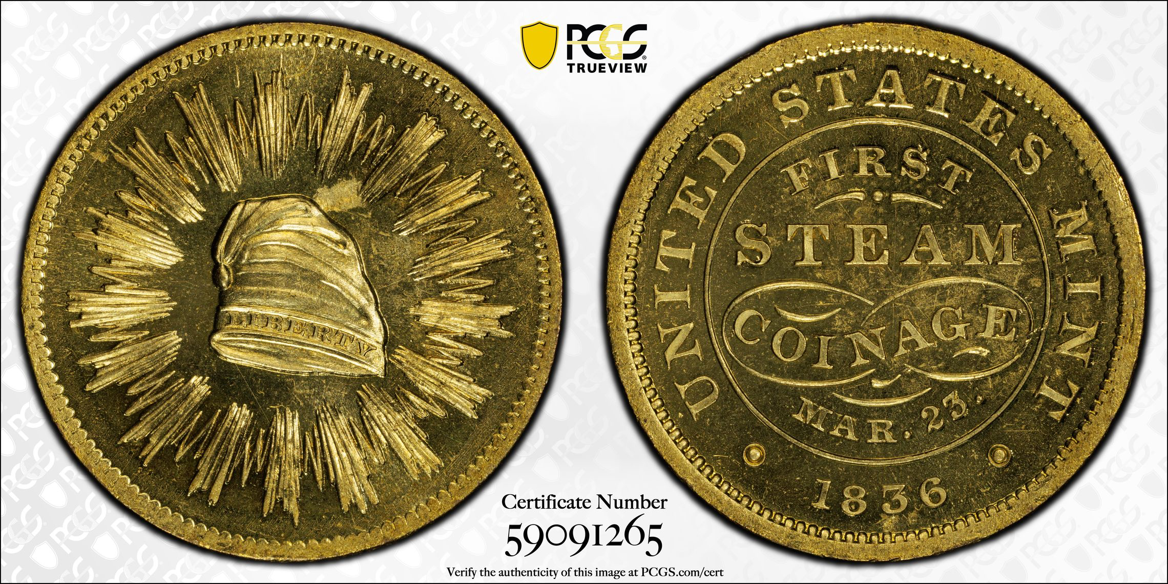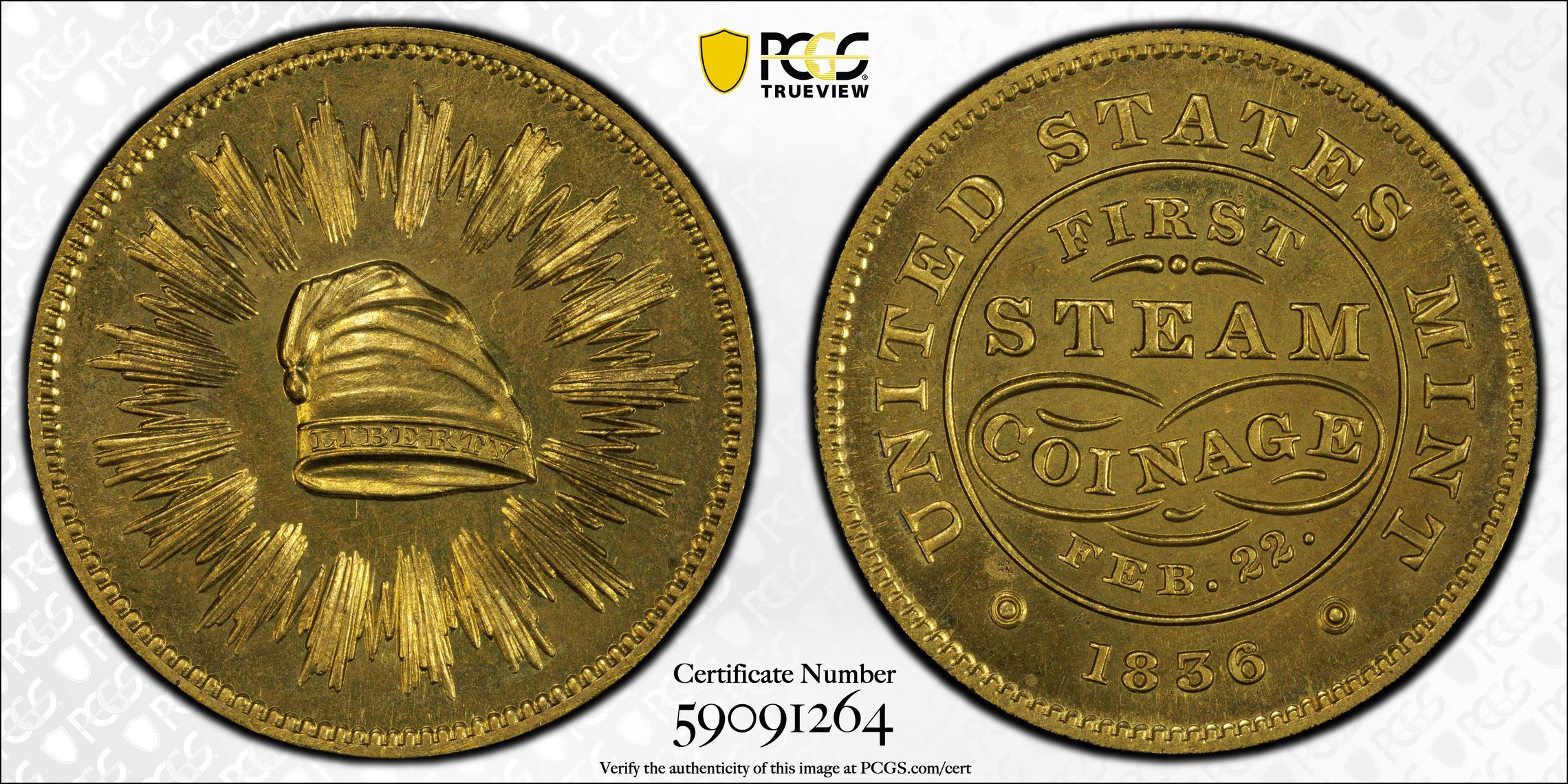 The "very first" numismatic item struck by steam power in the USA, pedigreed to Robert M Patterson, the US Mint Director at the time of striking:
