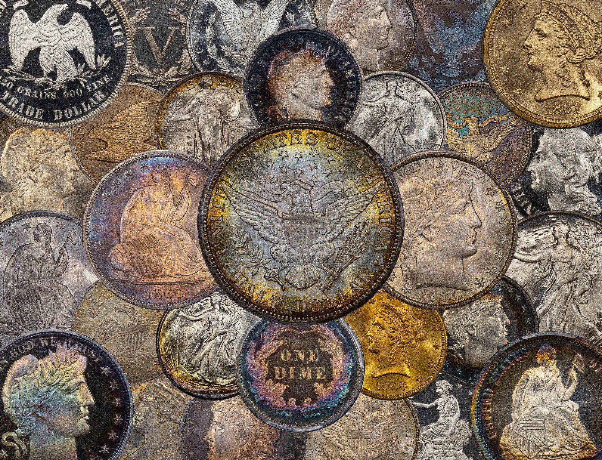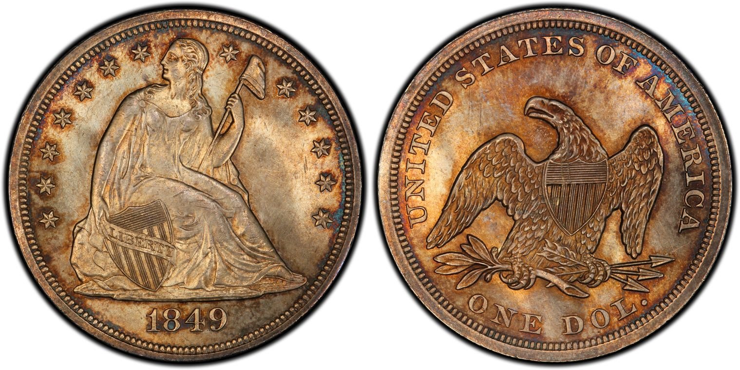 A shiny copper-colored 1849 MS65 CAC Seated Dollar to ring in the new year. One of my favorites in the collection.