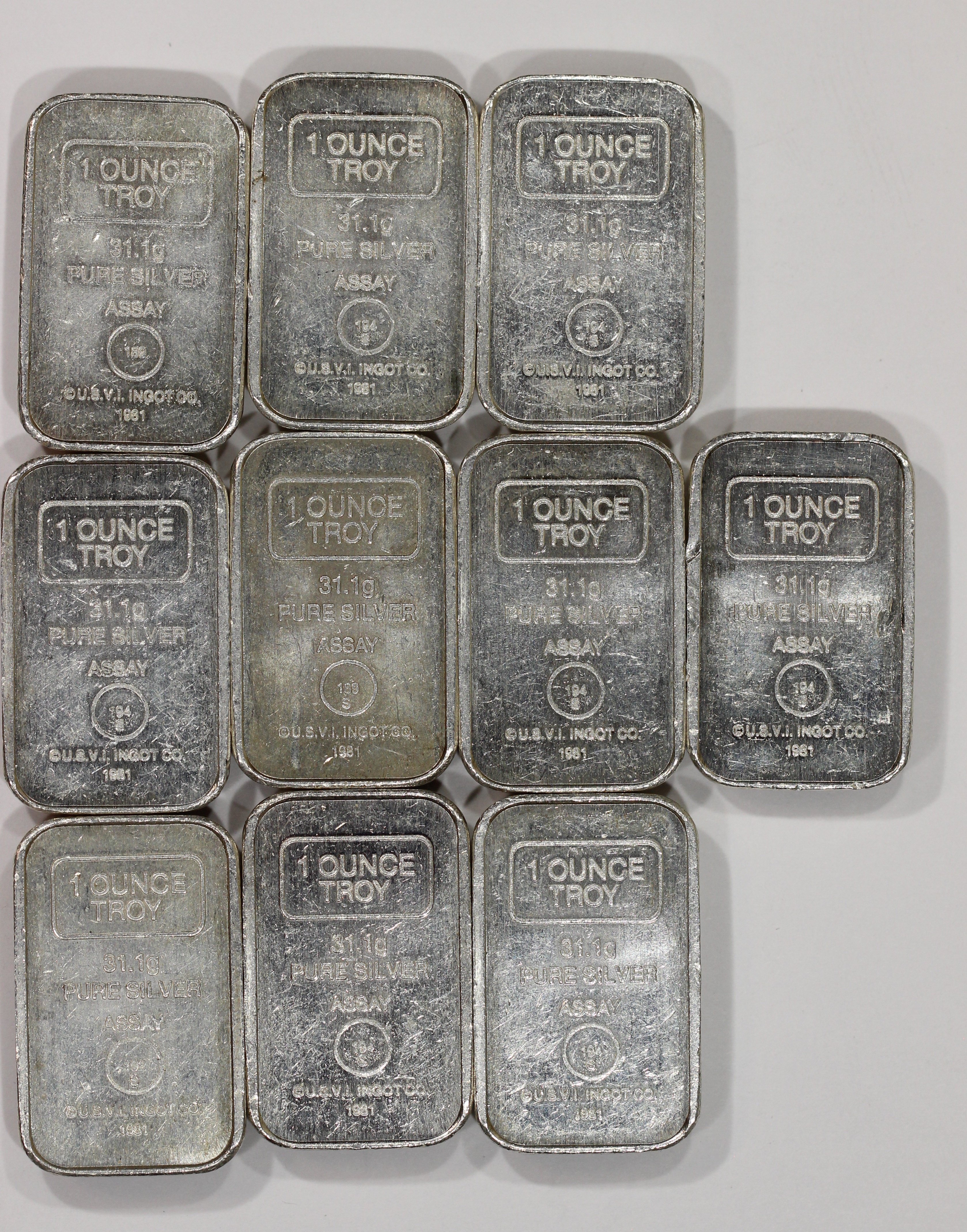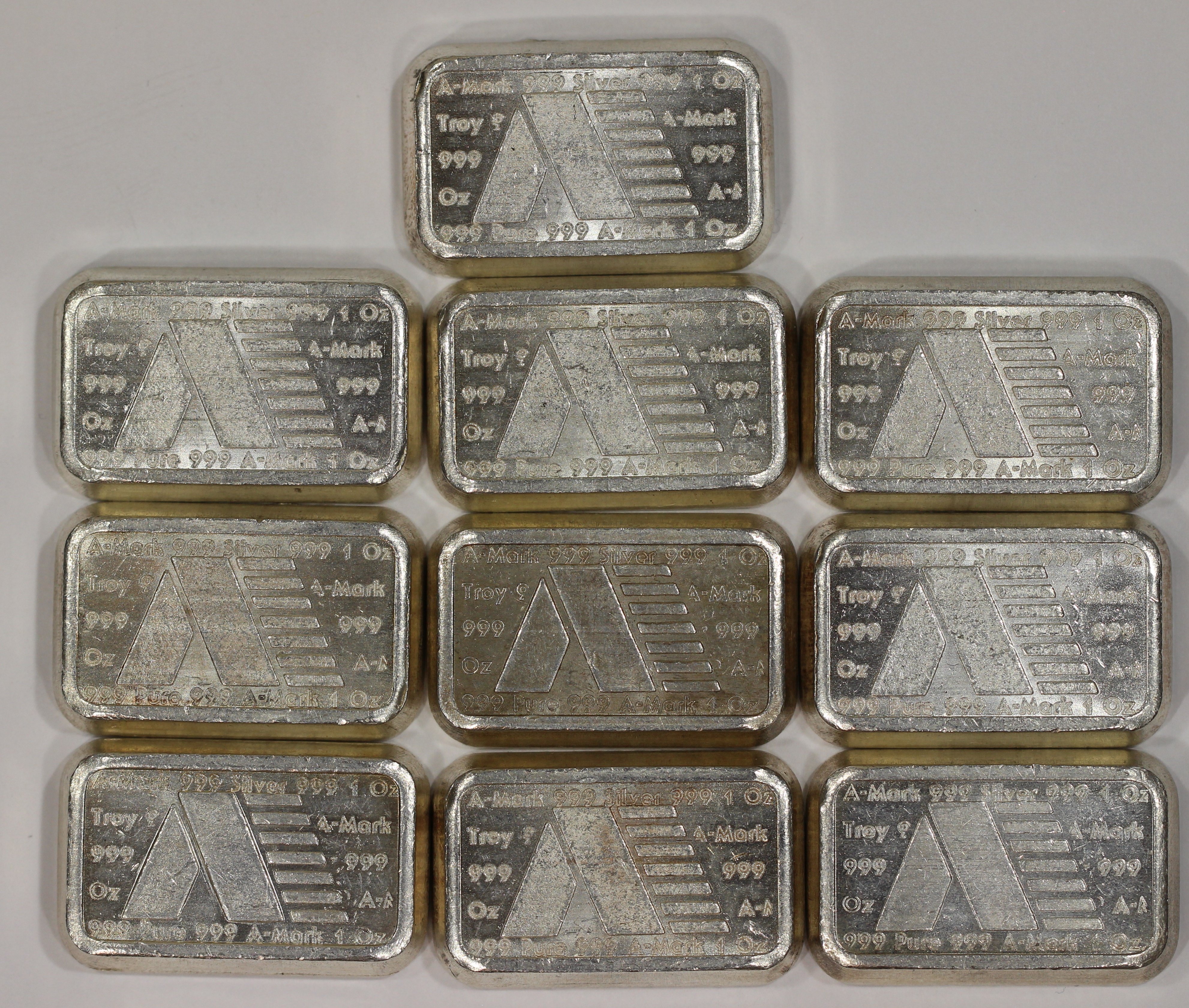(4) generic .999 10 ounce silver bars. 40 oz, $3340. Must buy all four bars. Minor tarnish in a couple of spots.